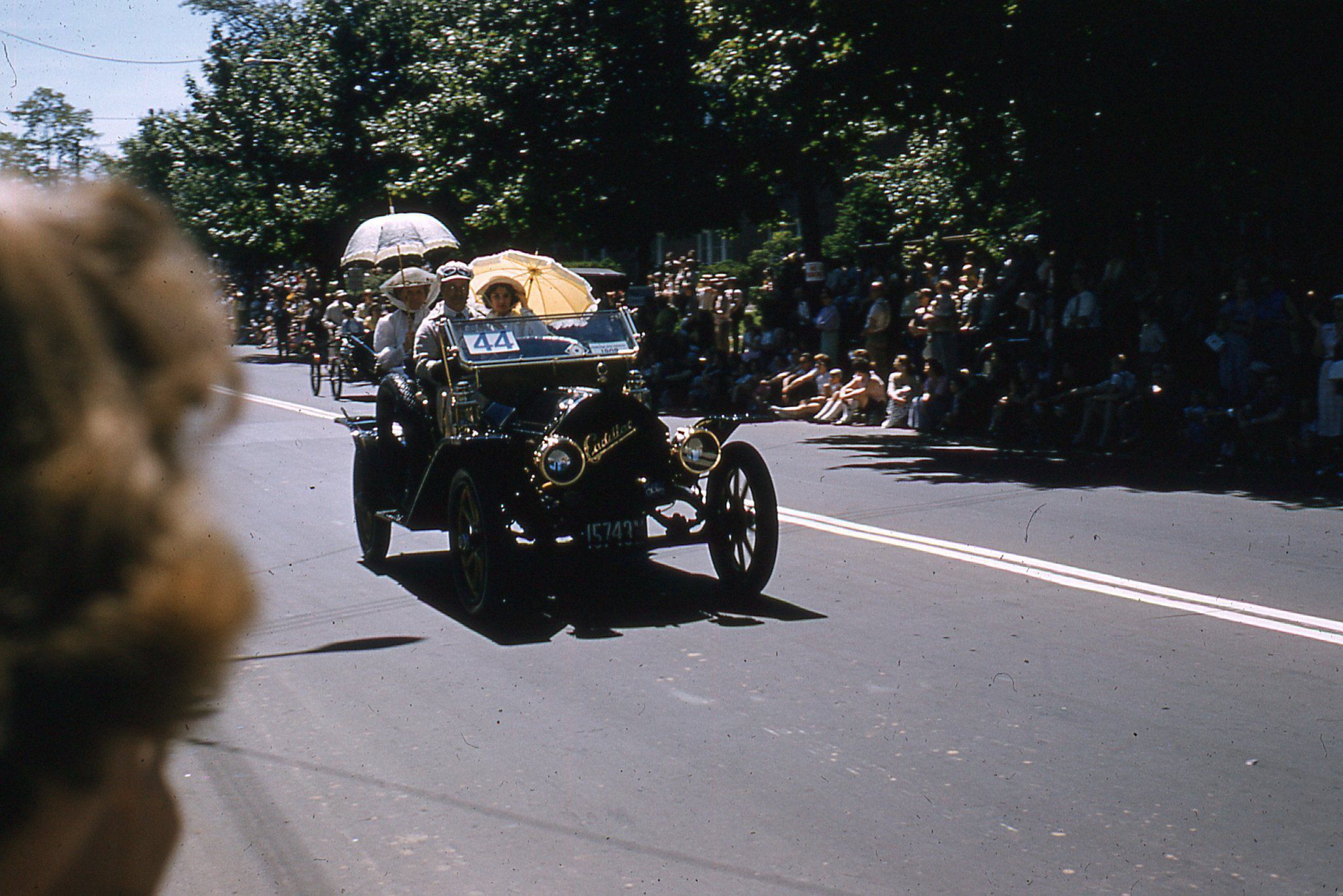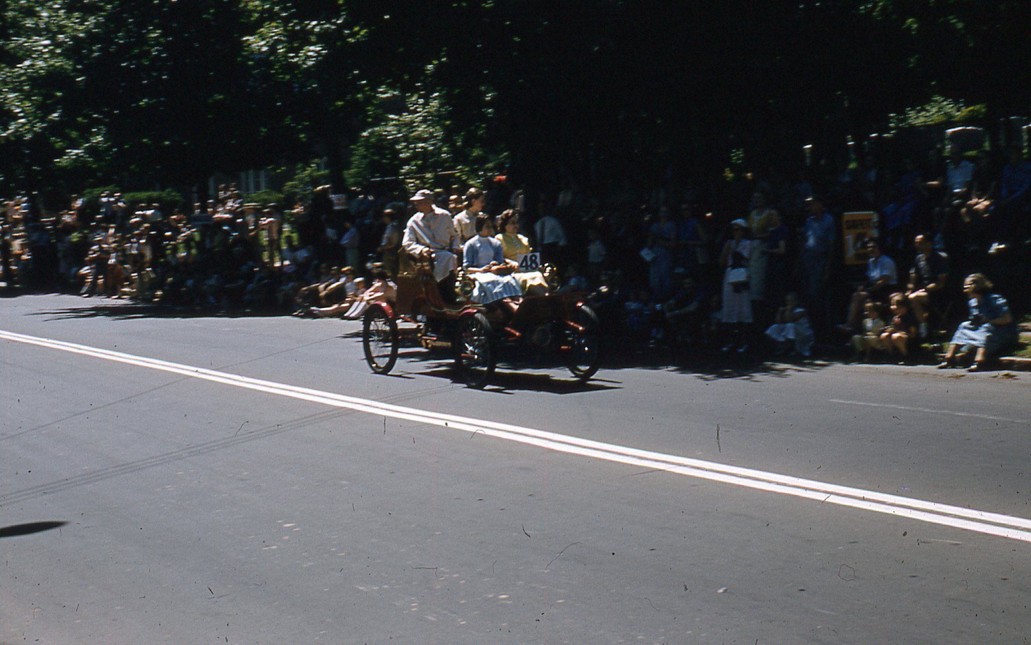 Photographs of antique automobiles on Millburn Avenue, Near St. Stephen's Cemetery in the Millburn Centennial Parade on May 25, 1957. The automobiles were part of hte Curtain Raiser Division of the Parade, which featured 50 automobiles from the Antique Automobile Club of America.