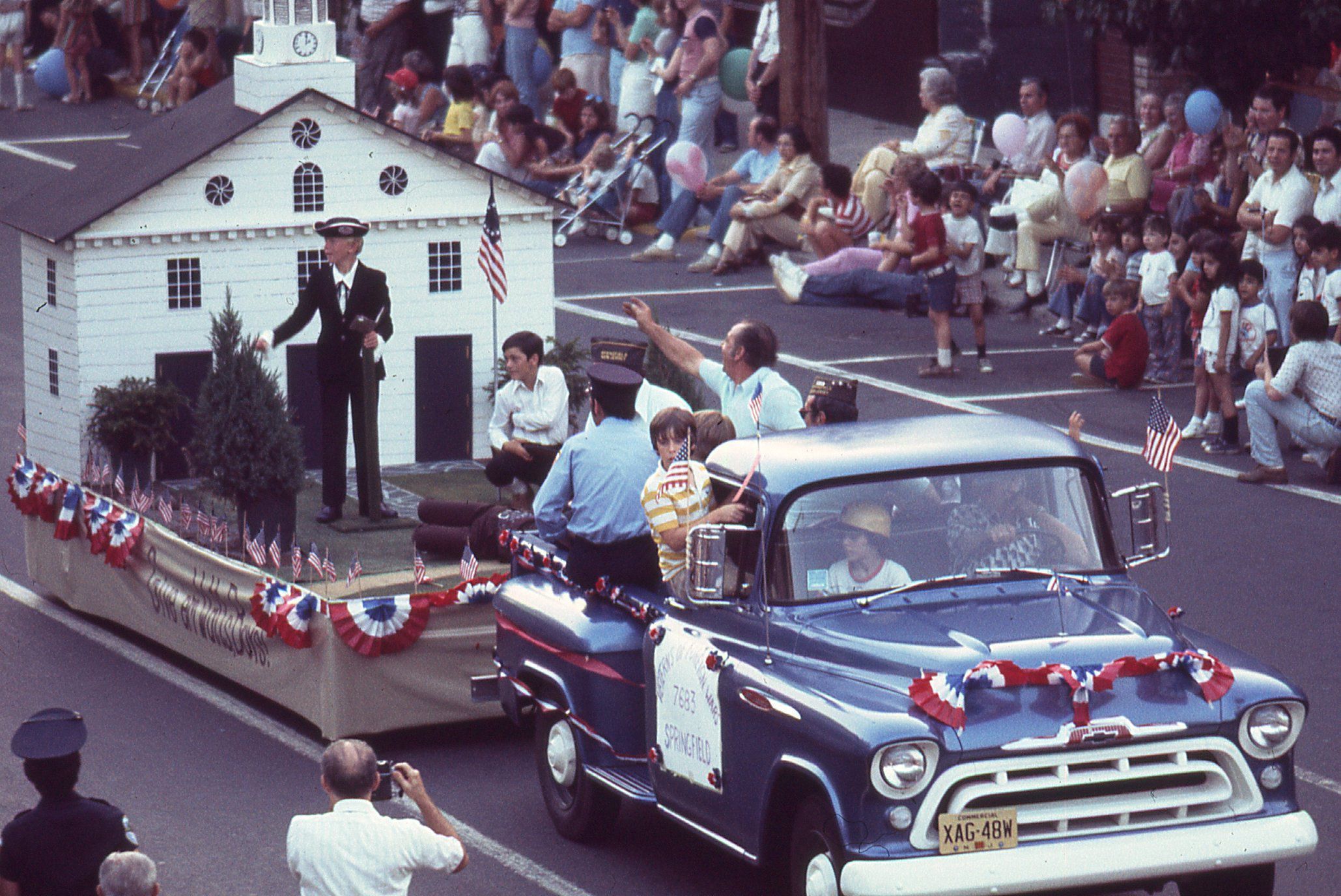 Photographs taken by Owen Lampe of the Give em' Watts Float in the July 2, 1976 parade on Millburn Avenue, celebrating the American Bicentennial.