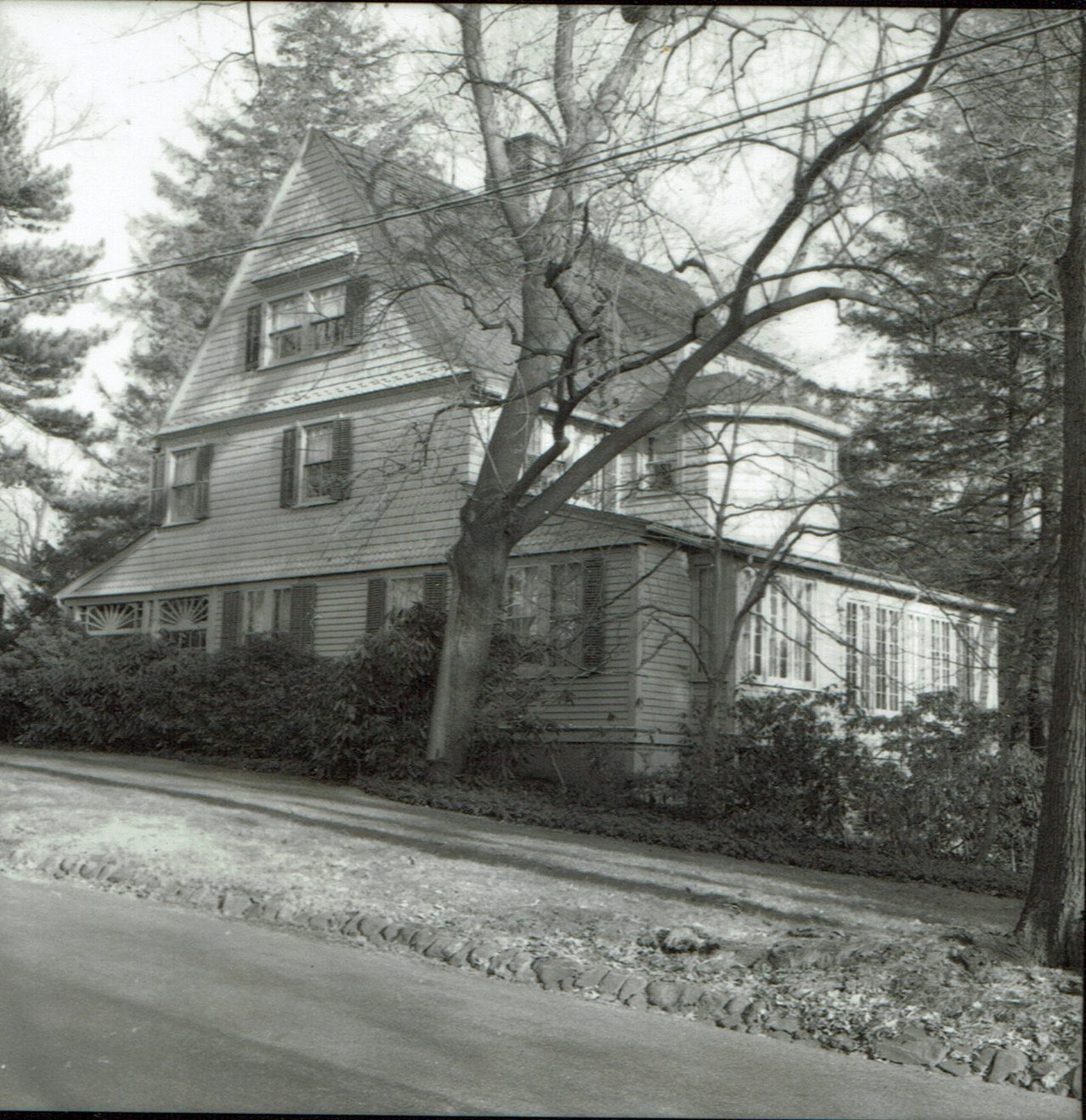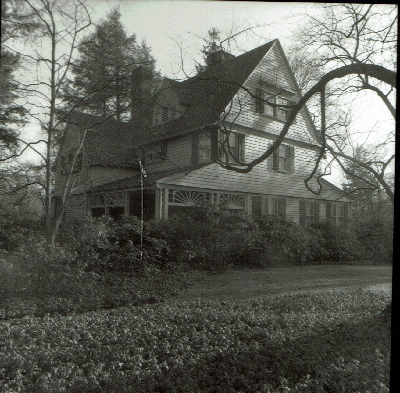 Photographs from the 1977 David Gibson Historic Survey of 28 Forest Drive, Short Hills. Shingle style house from 1881. One of the original Hartshorn Estate, Inc. houses, Hartshorn House # 21. House was designed by and belonged to Edward Gardner Layng.