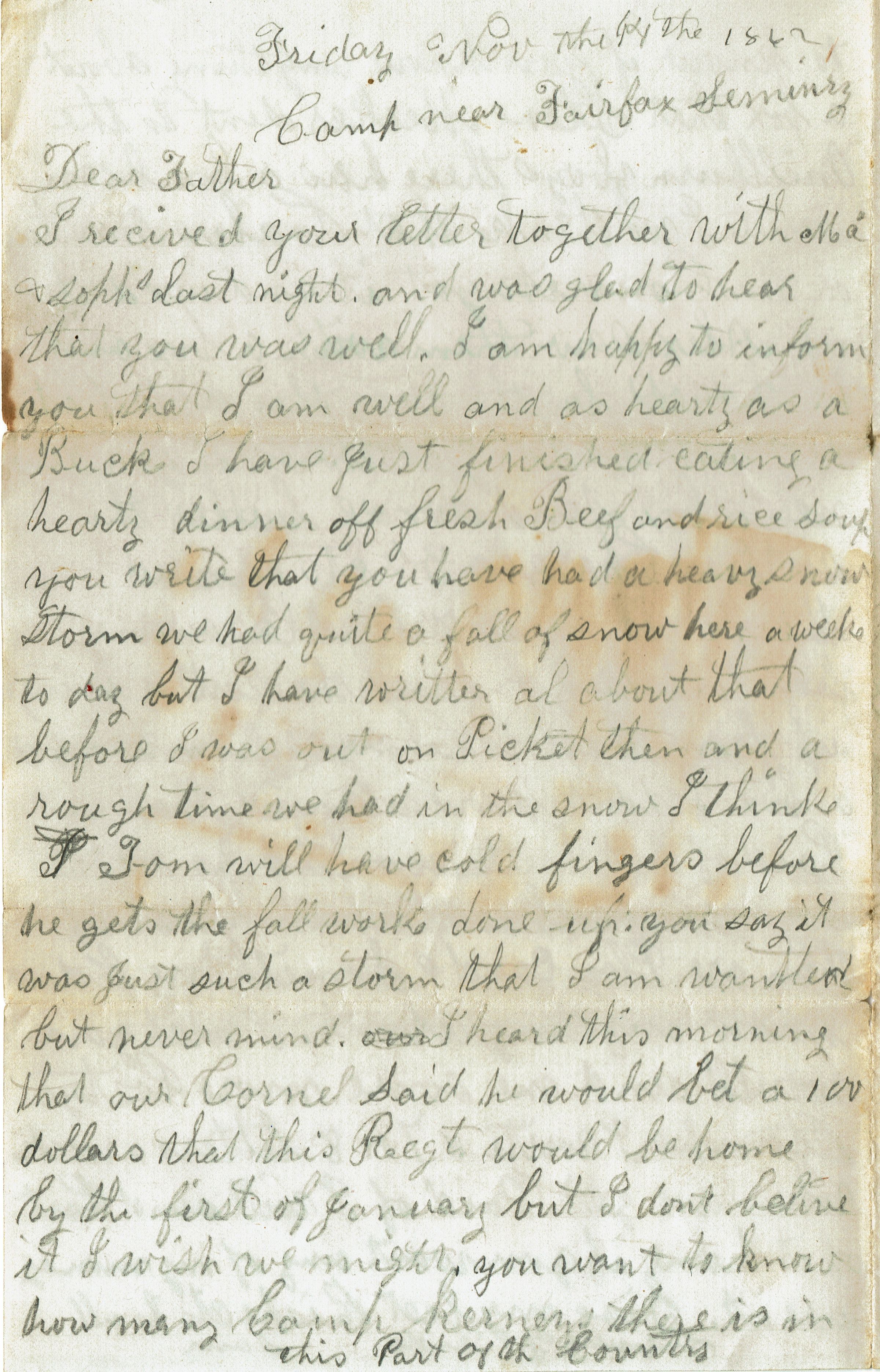 Parsil: Samuel B. Parsil Civil War Letter to Father, November 14, 1862