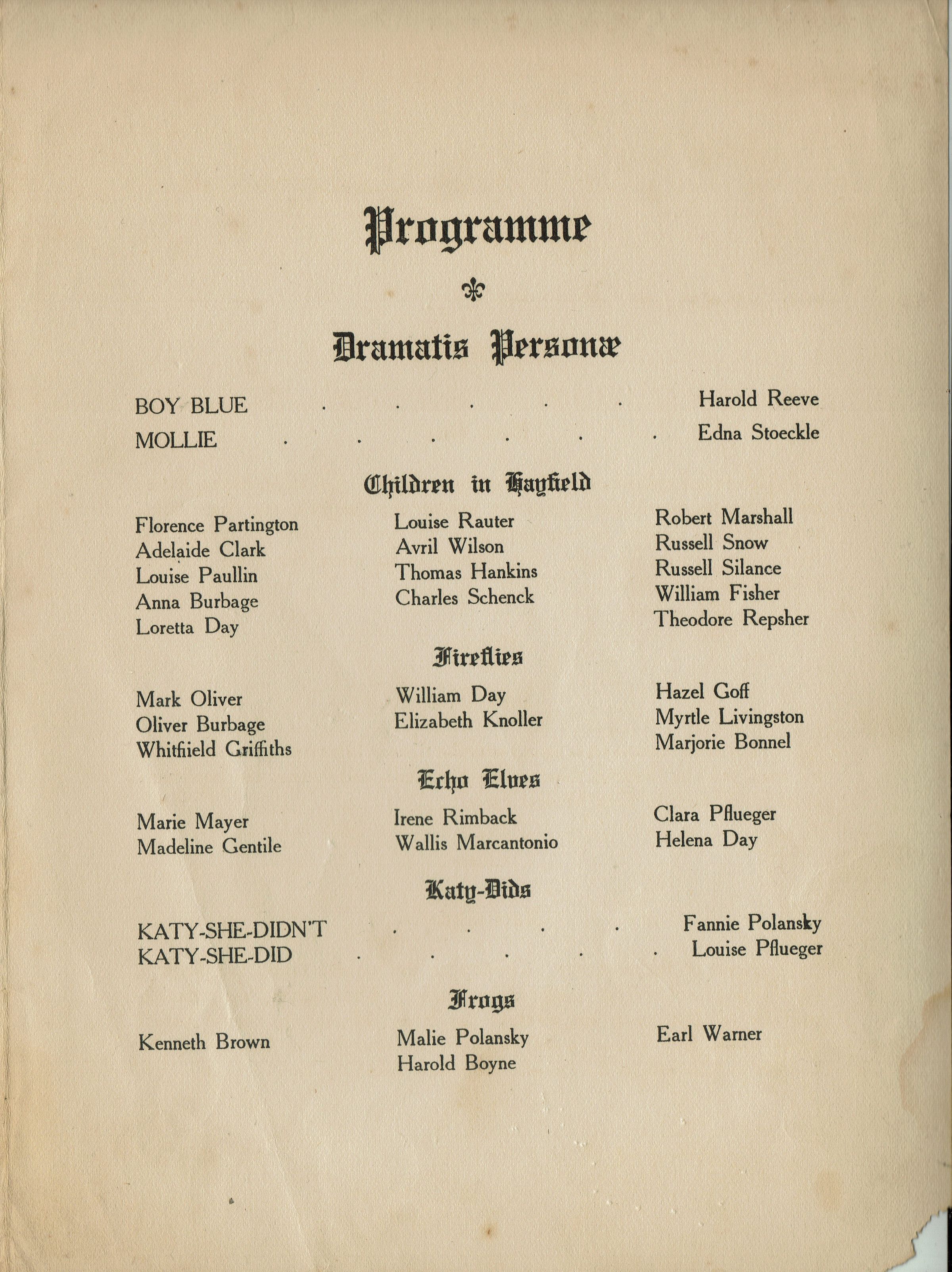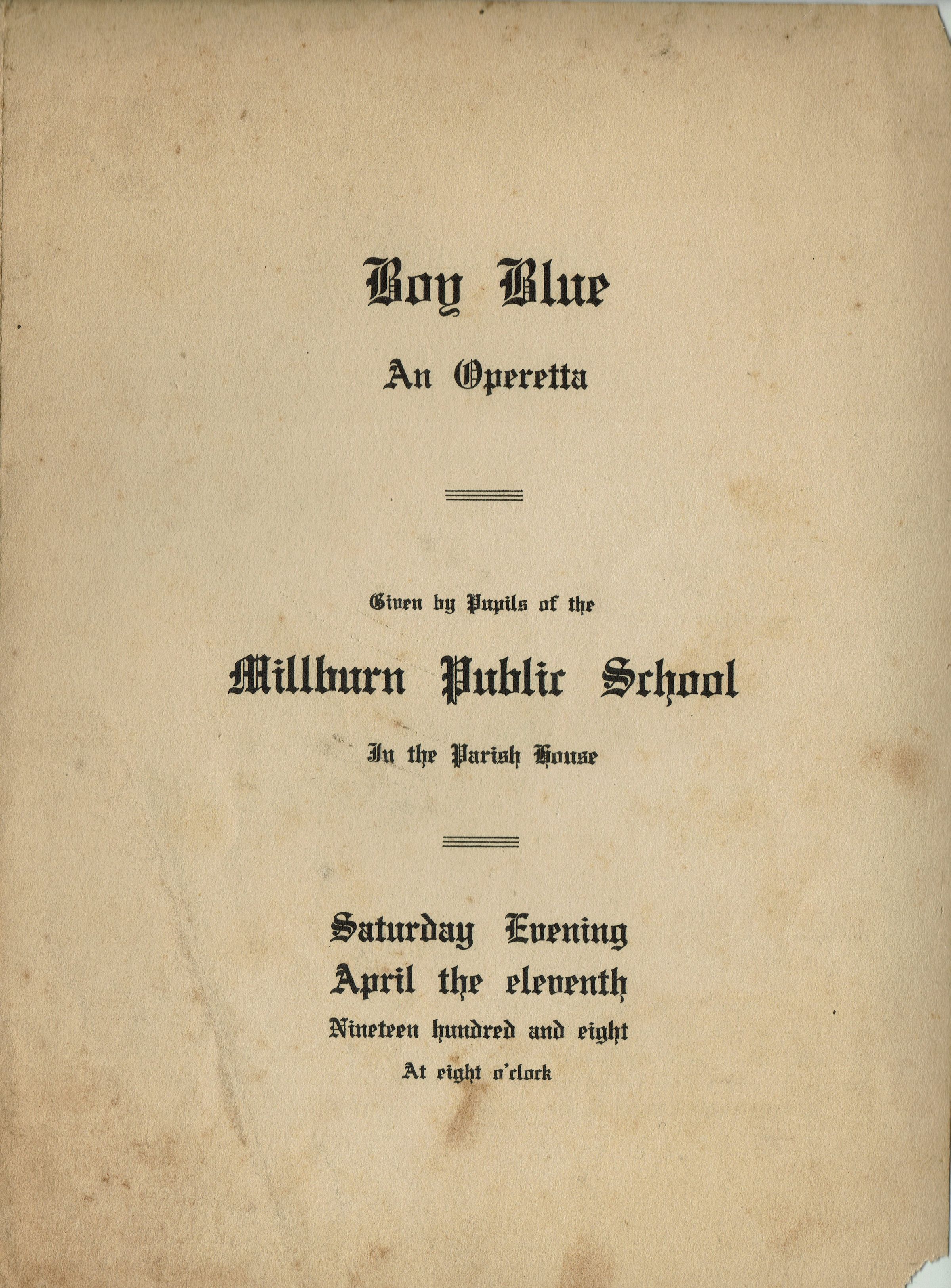 Archive Entry Archive Entry Go back Prev Item Next Item Flanagan: Boy Blue Operetta Millburn School Program, 1908 Publication Entry/Object ID2023.246.052CollectionFlanagan CollectionAcquisitionAccession2023.246DimensionsHeight8-3/4 inWidth6-1/4 in