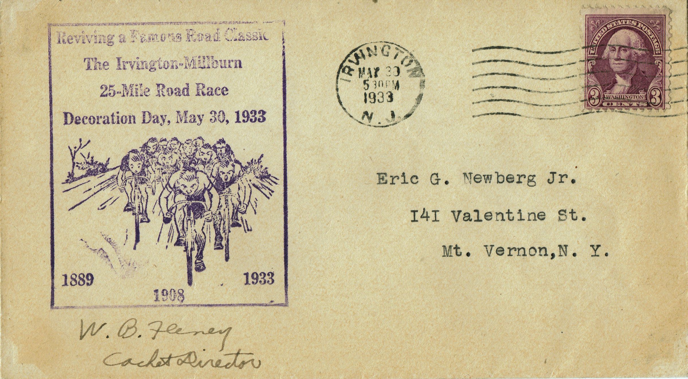 Irvington-Millburn Road Race Decoration Day Envelope 1933
