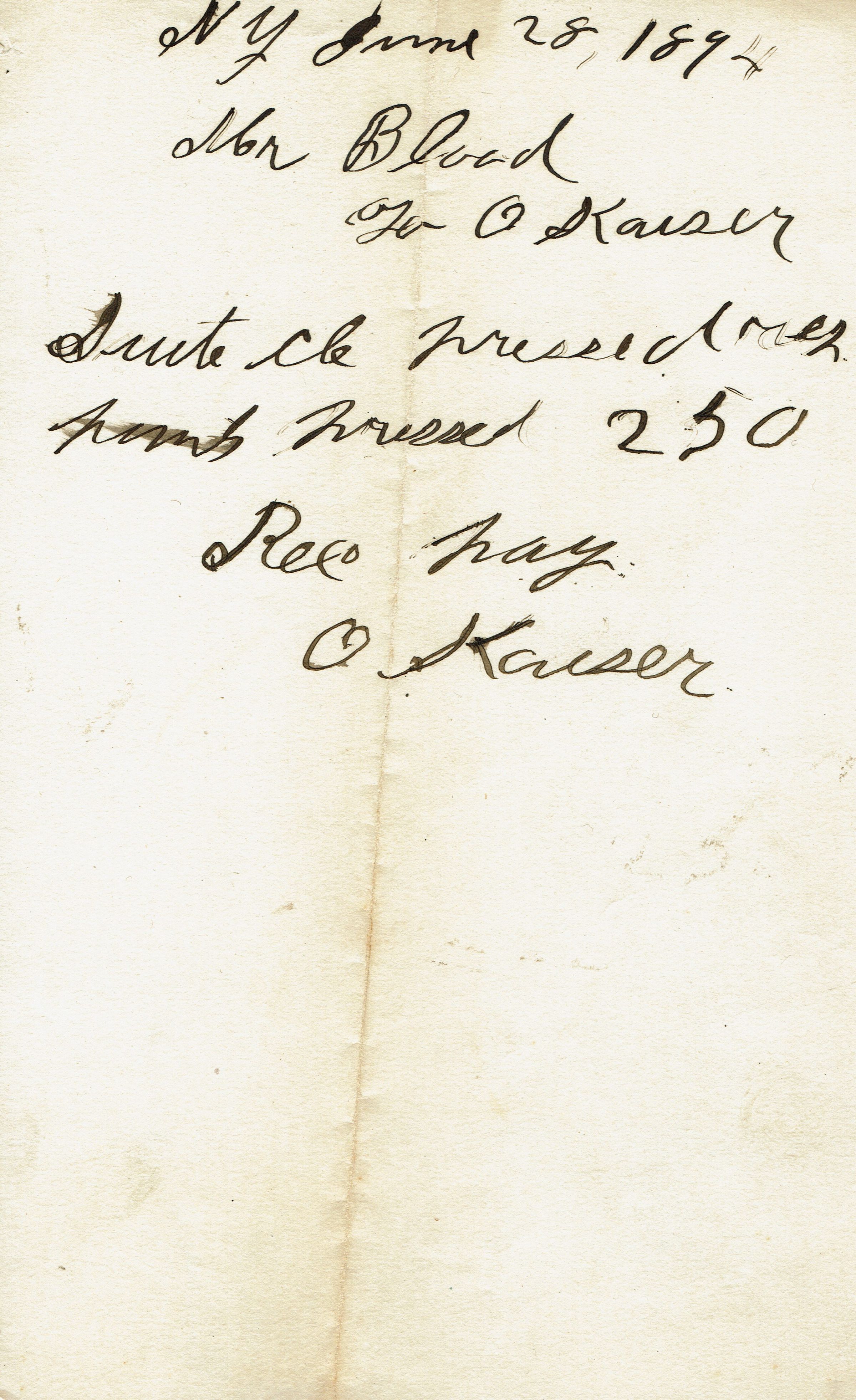 Blood: Clothing and Shoe Receipts, c. 1895