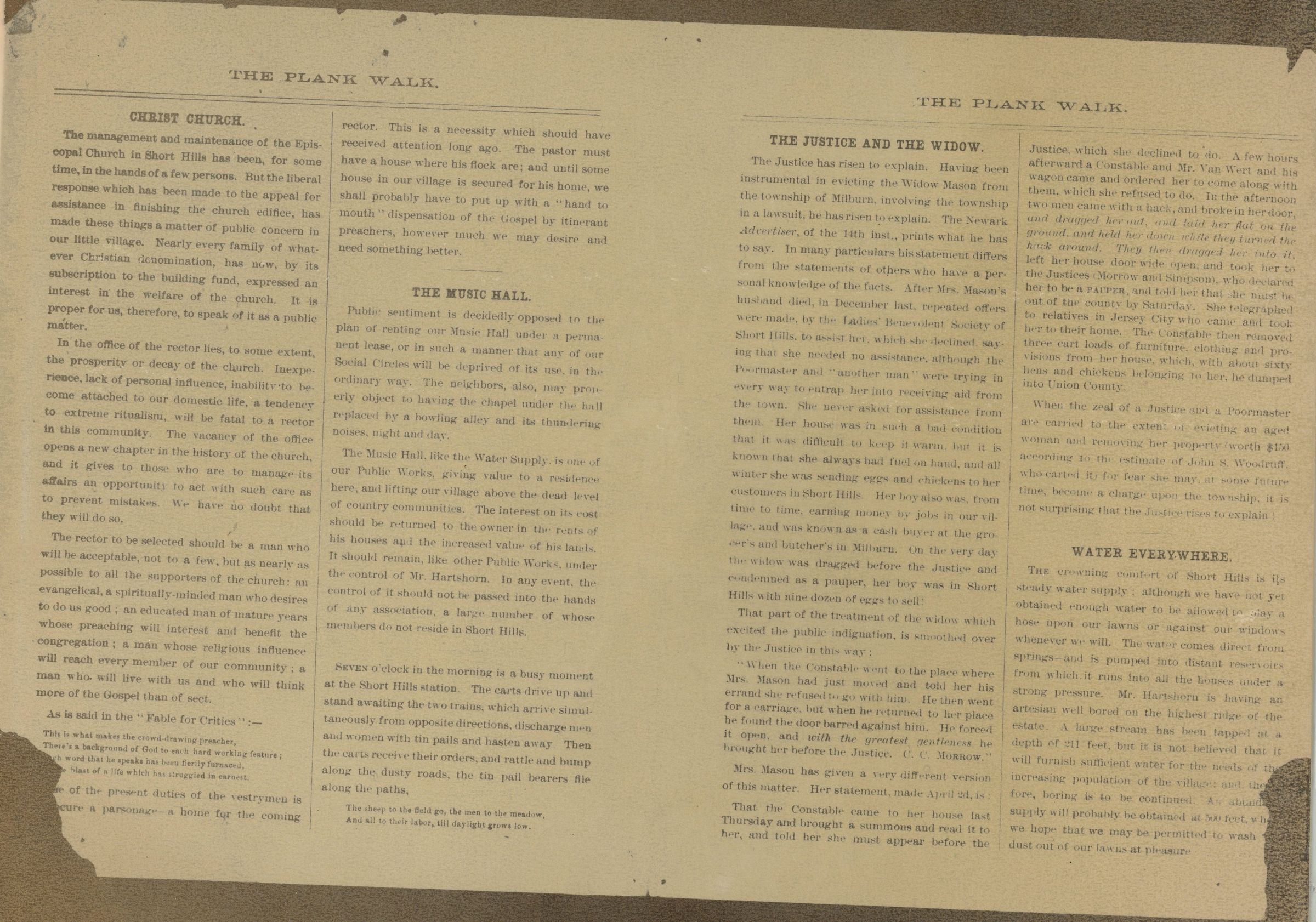 Archive Entry Archive Entry Go back Prev Item Next Item Newspaper: Plank Walk: Laid at Short Hills, 1884 Publication Entry/Object ID2024.062.001CollectionHistoric NewspapersAcquisitionAccession2024.062DimensionsHeight8 inWidth5-1/2 in