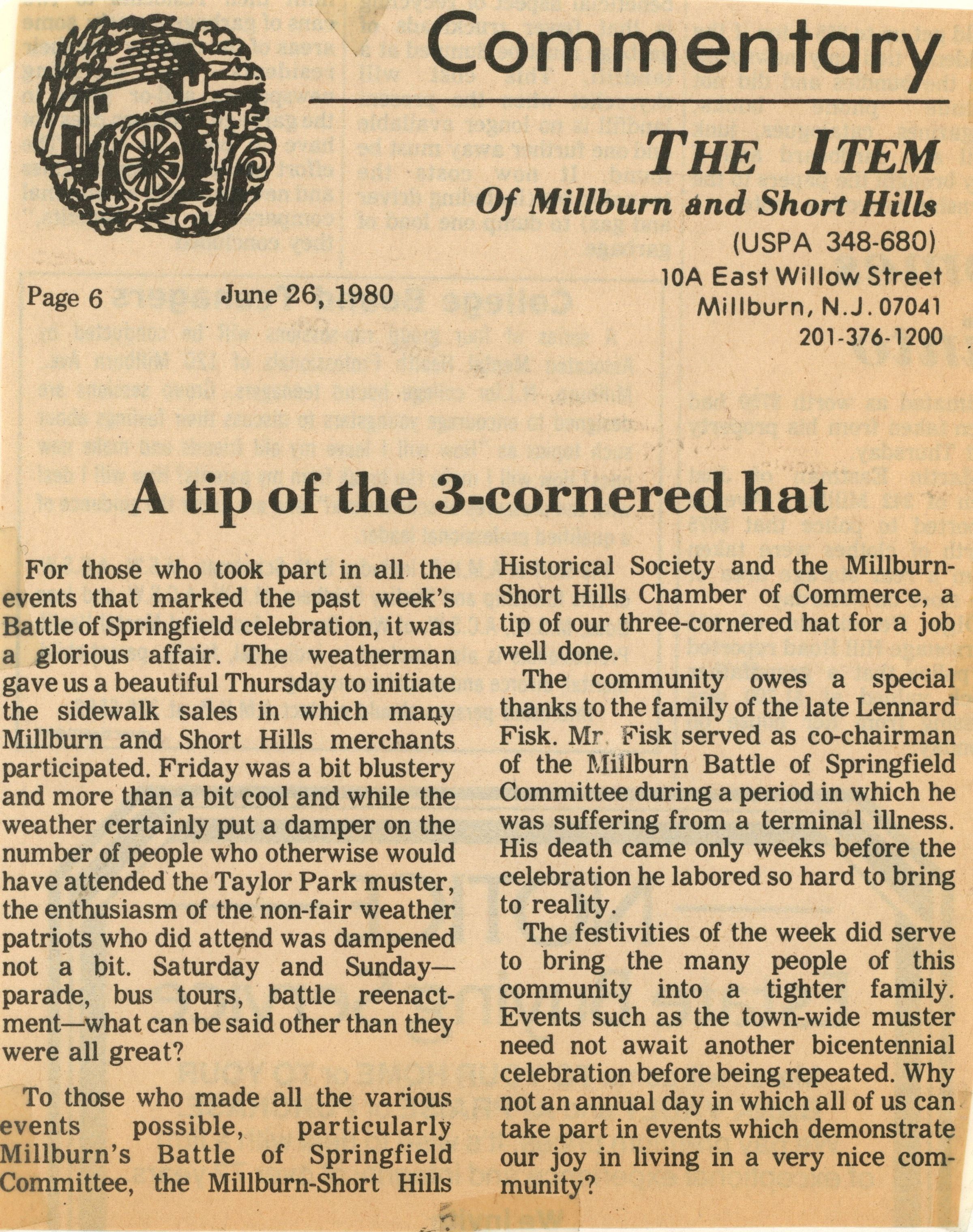 Battle of Springfield Bicentennial Celebration Materials
