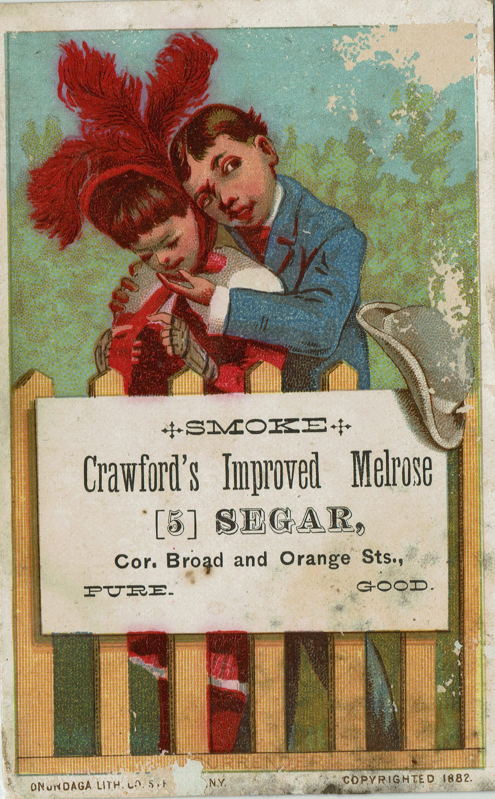 Advertising Cards from Crawford's Melrose Cigars (2), Ball & Company Clothing Store, Colyner & Company Clothiers, Hayne & Company Furnishings from the collection of Mary Gallitelli.
