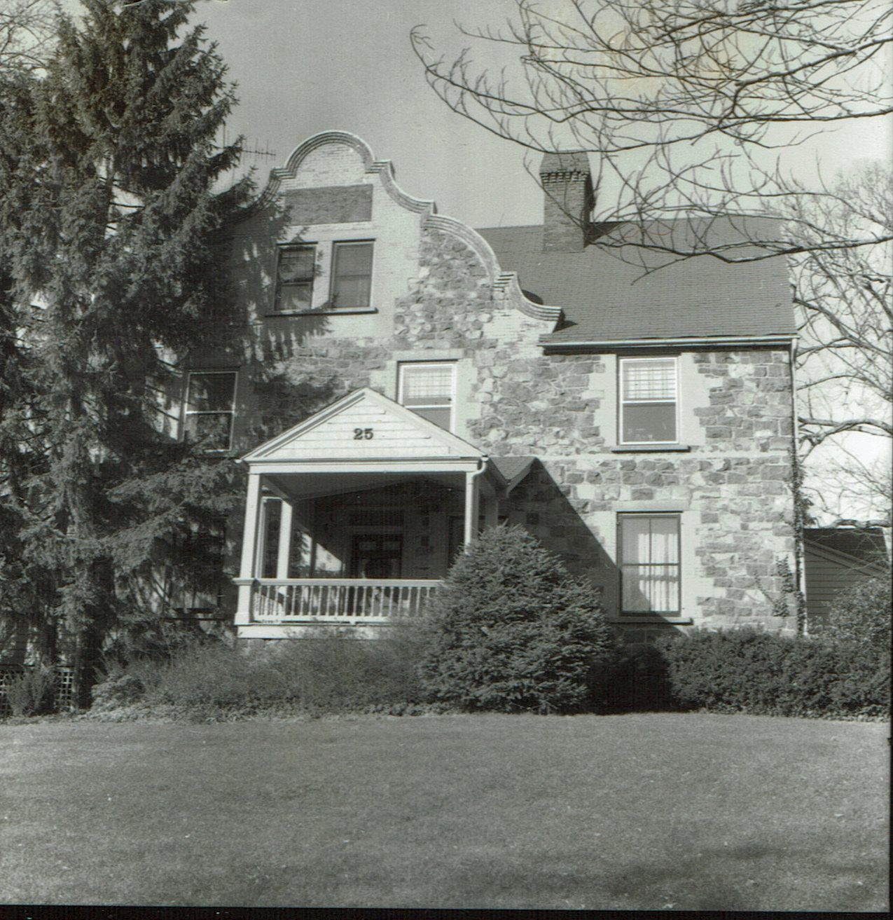 One of the original Hartshorn Estates, Inc. houses (unnumbered). The house was constructed in c. 1888 in the Medieval Revival Style (Elizabethan Revival with Jacobean features and curved stepped gables from the Netherlands). Also features ornamental brick chimneys.