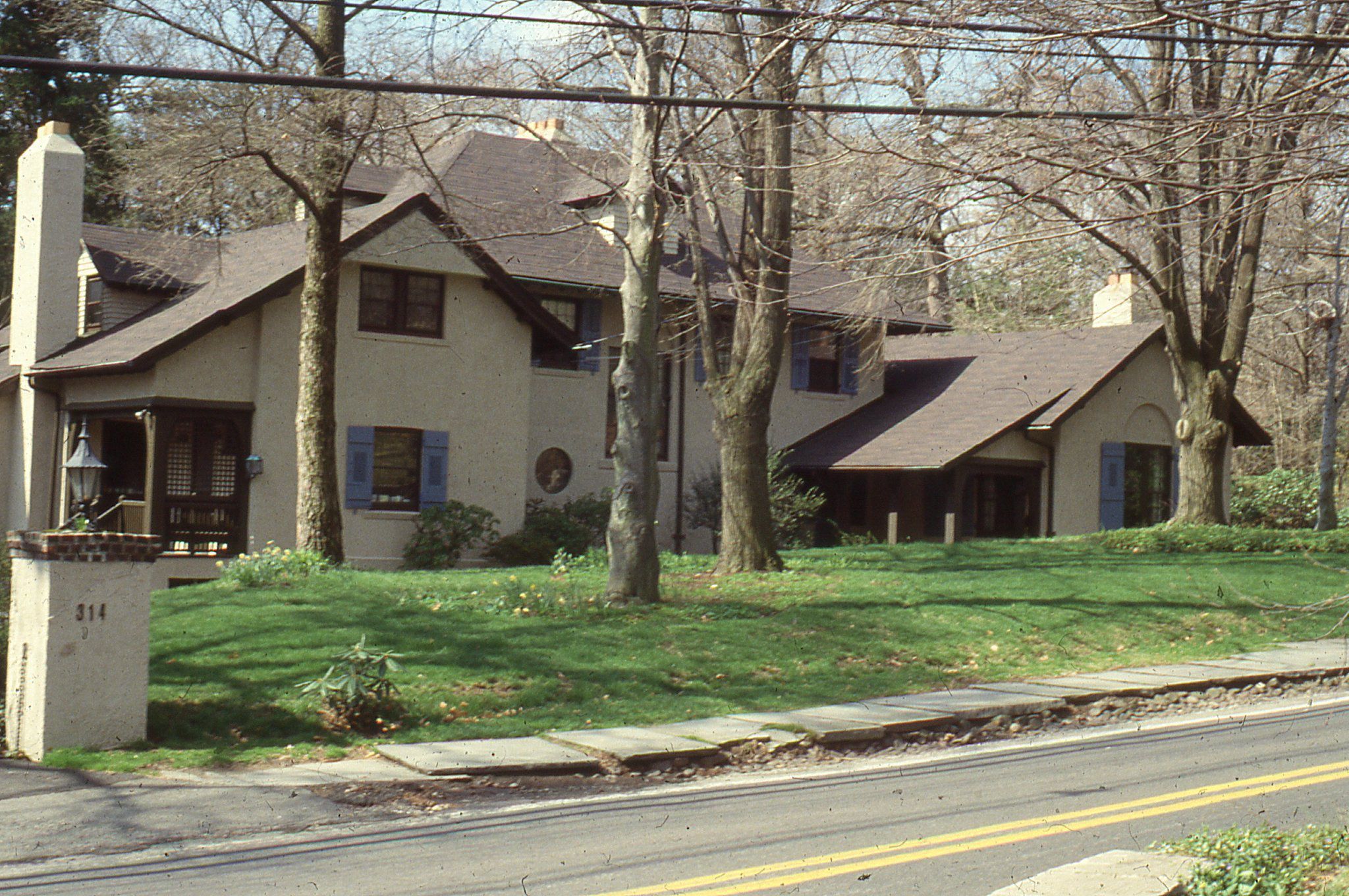 Photograph of 314 Hobart Avenue, Short Hills. Designed by architect Wilson Eyre for B. van H. Schultz in 1910. Photograph taken by Owen Lampe in 1988.