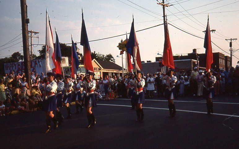 July 4: Marching Bands and Twirlers in American Bicentennial Parade, 1976