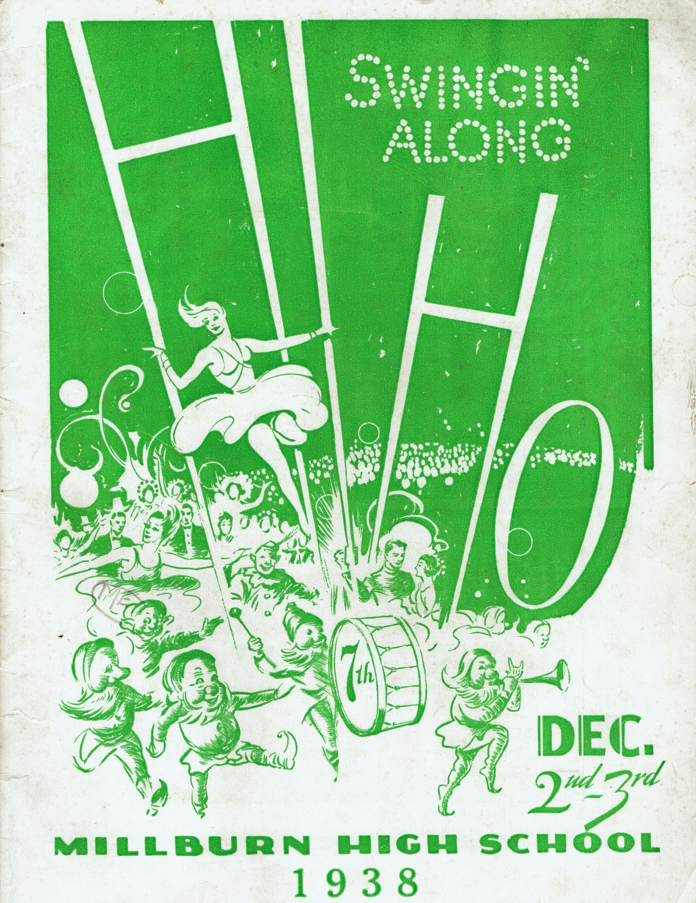 Swingin' Along, The 7th Annual Hi-Ho Revue. Millburn High School, December 2 & 3, 1938. The Community Show Presented in Broadway Style show for your Enjoyment. The show was sponsored by the Wyoming Church and the Wyoming Club. Produced and directed by Alfred J. Doyle, Jr. 35 pp., unpaginated. Contains program & local advertisements.