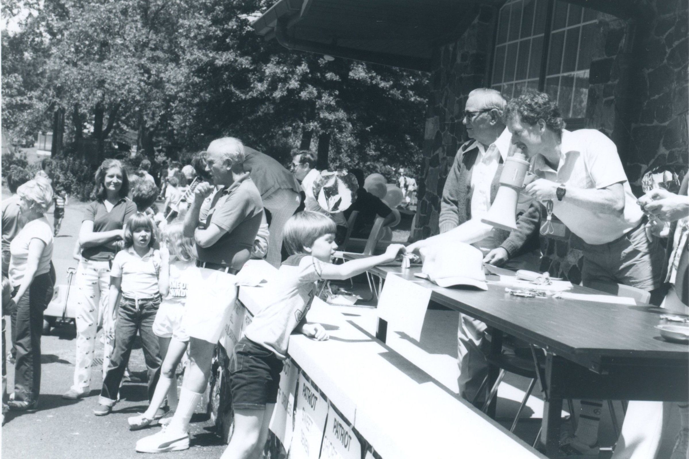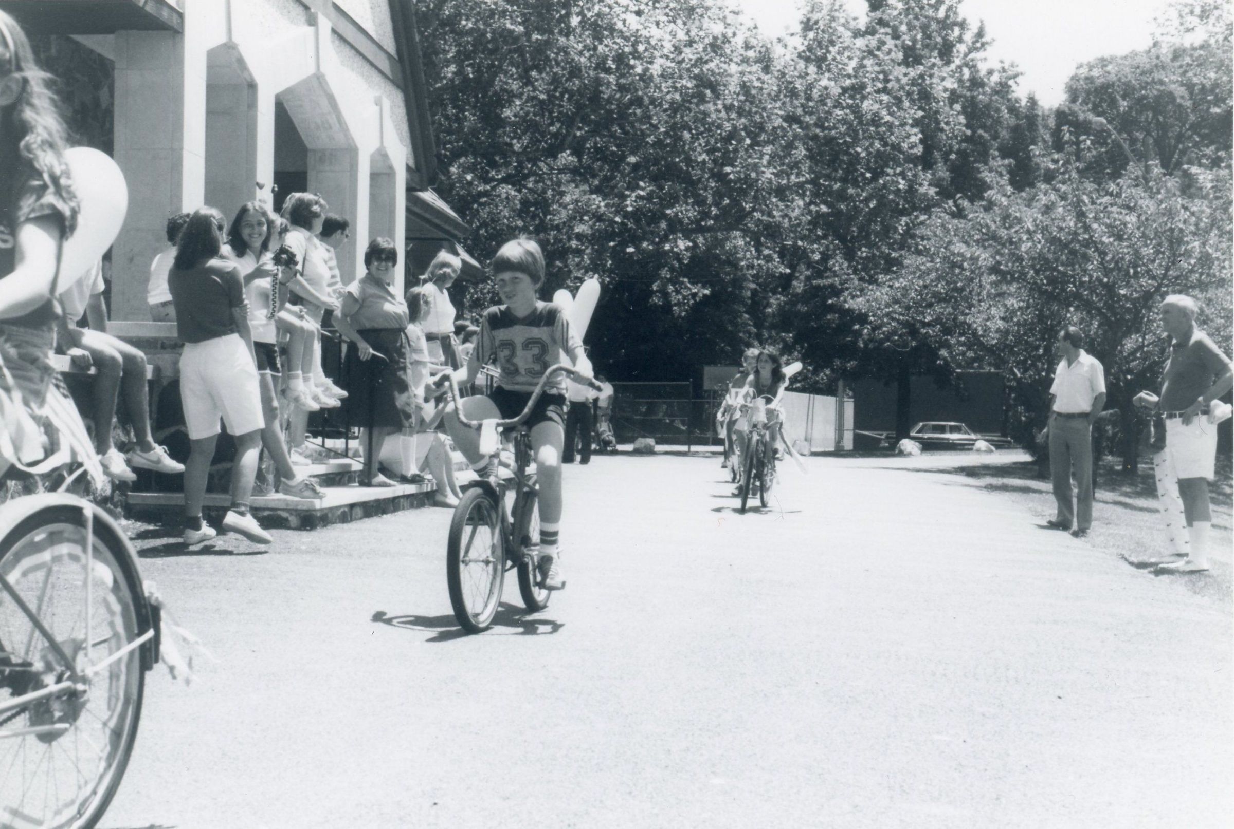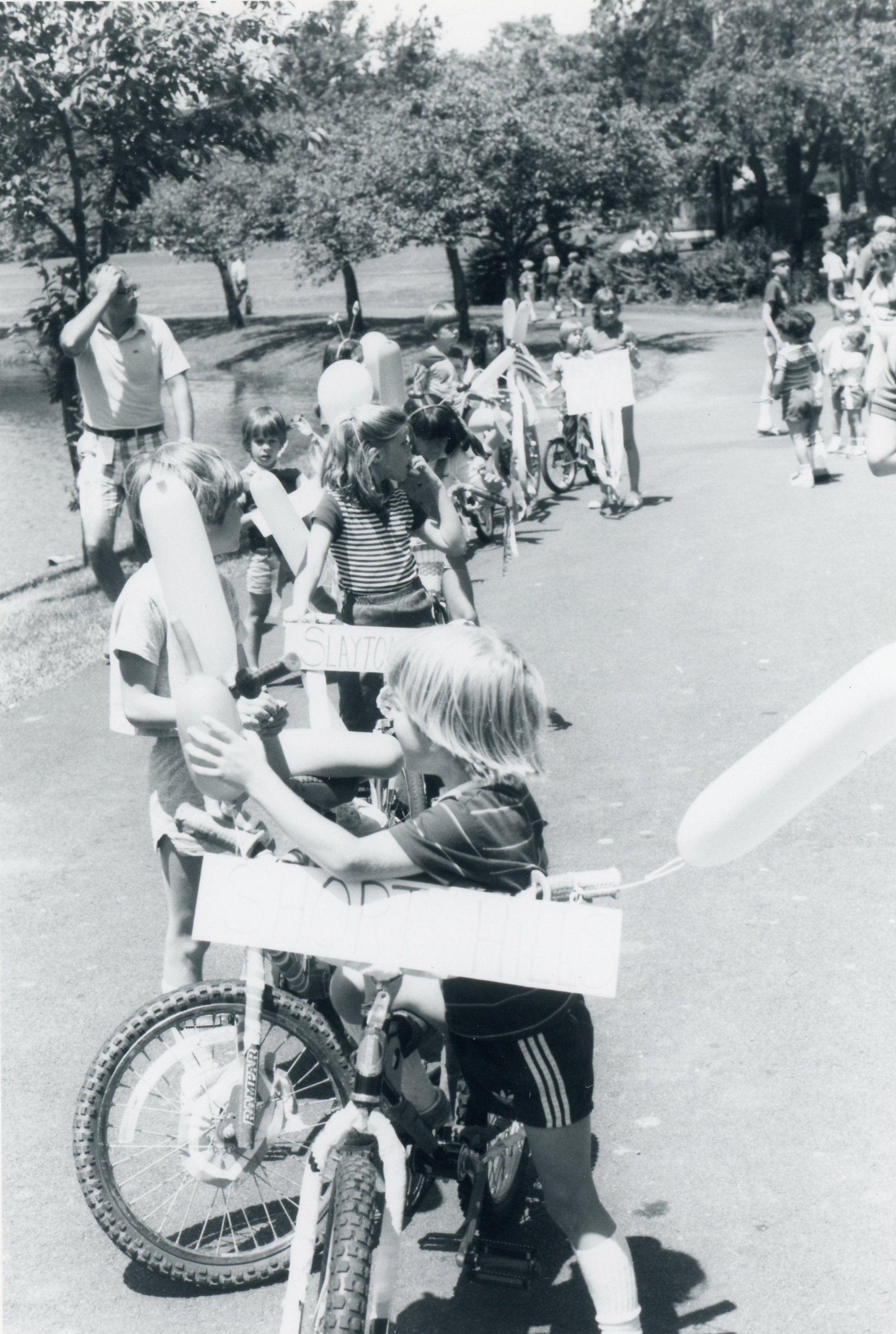 Recreation Department photographs of the July 4 bicycle parade in Taylor Park, c. 1980s