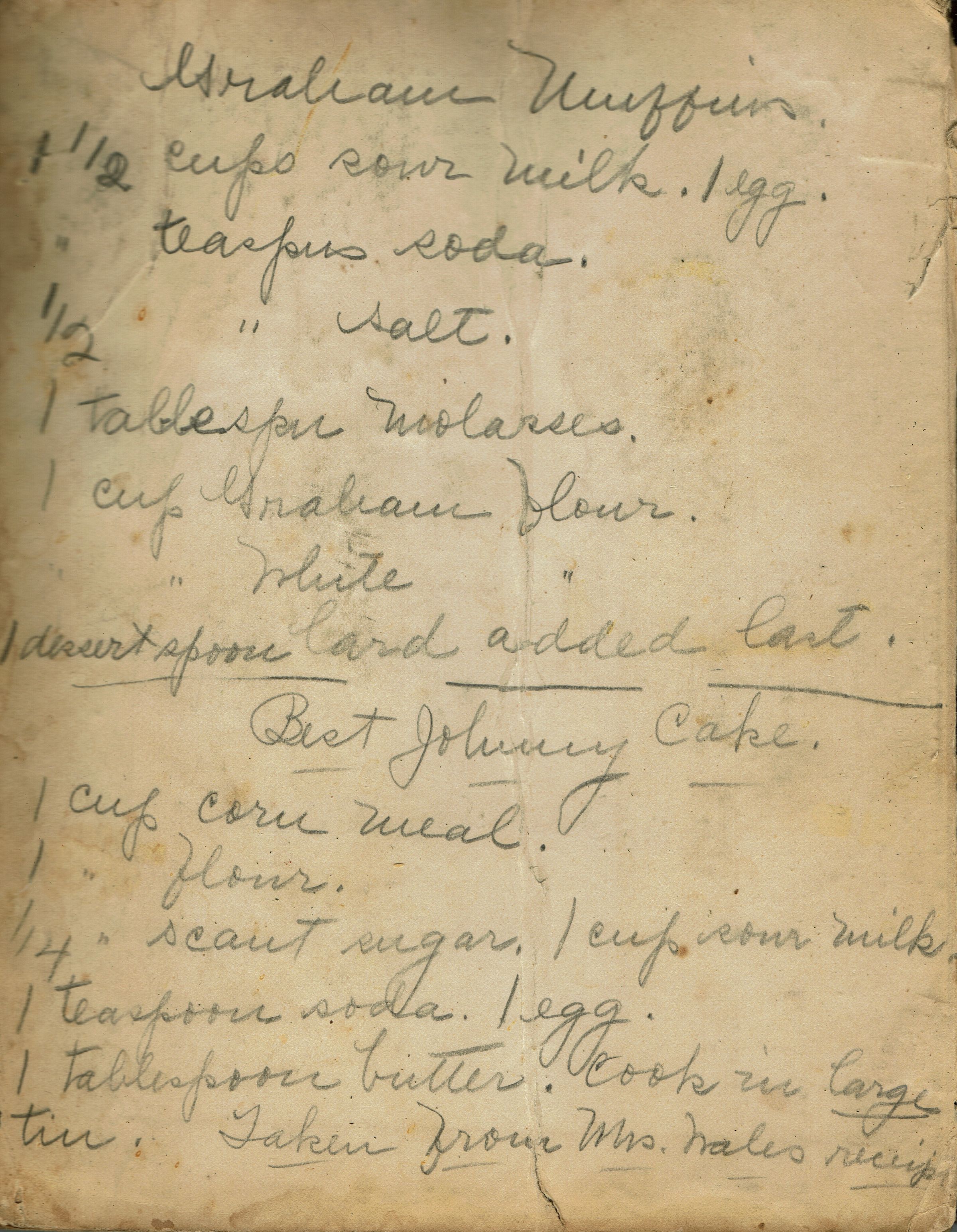 Hand-written recipe book featuring recipes copied from newspapers and some newspaper clippings pasted in. Owner made notes about good recipes, the source of the recipes and, in some cases, the dates. Range of dates are from 1895-late 1920s. Book was found in the attic of 298 Main Street, which contained materials from Mary and Mark Oliver. This may have been Mary's recipe book. The book exemplifies women's recipe collecting practices in the late 19th-early 20th centuries and popular foods of the period.