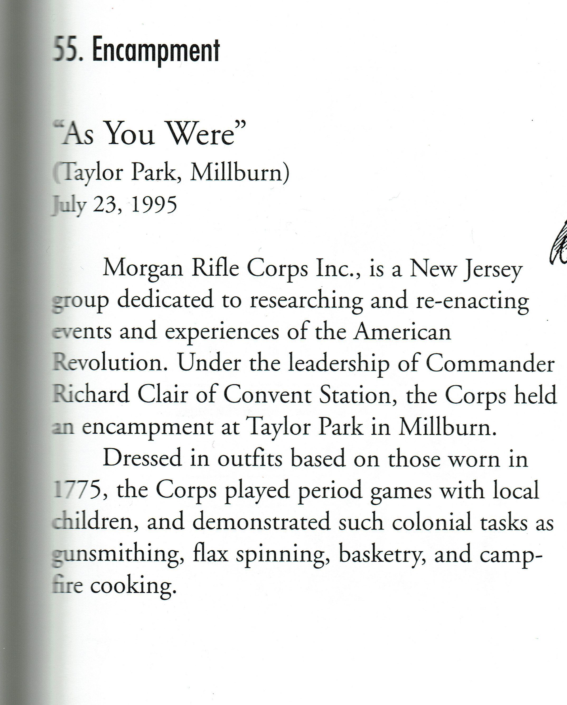 Book of cartoons and columns by Kay Kato from her Sunday Star-Ledger columns celebrating Essex Country parks published for the centennial celebration of the Essex County Parks. Includes cartoon entitled "Encampment" from a re-enactment of the American Revolution, which took place in Taylor Park, Millburn on July 23, 1995 (pp. 17-118).
