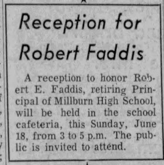 Faddis: Faddis Retirement Reception at Millburn High School, 1961