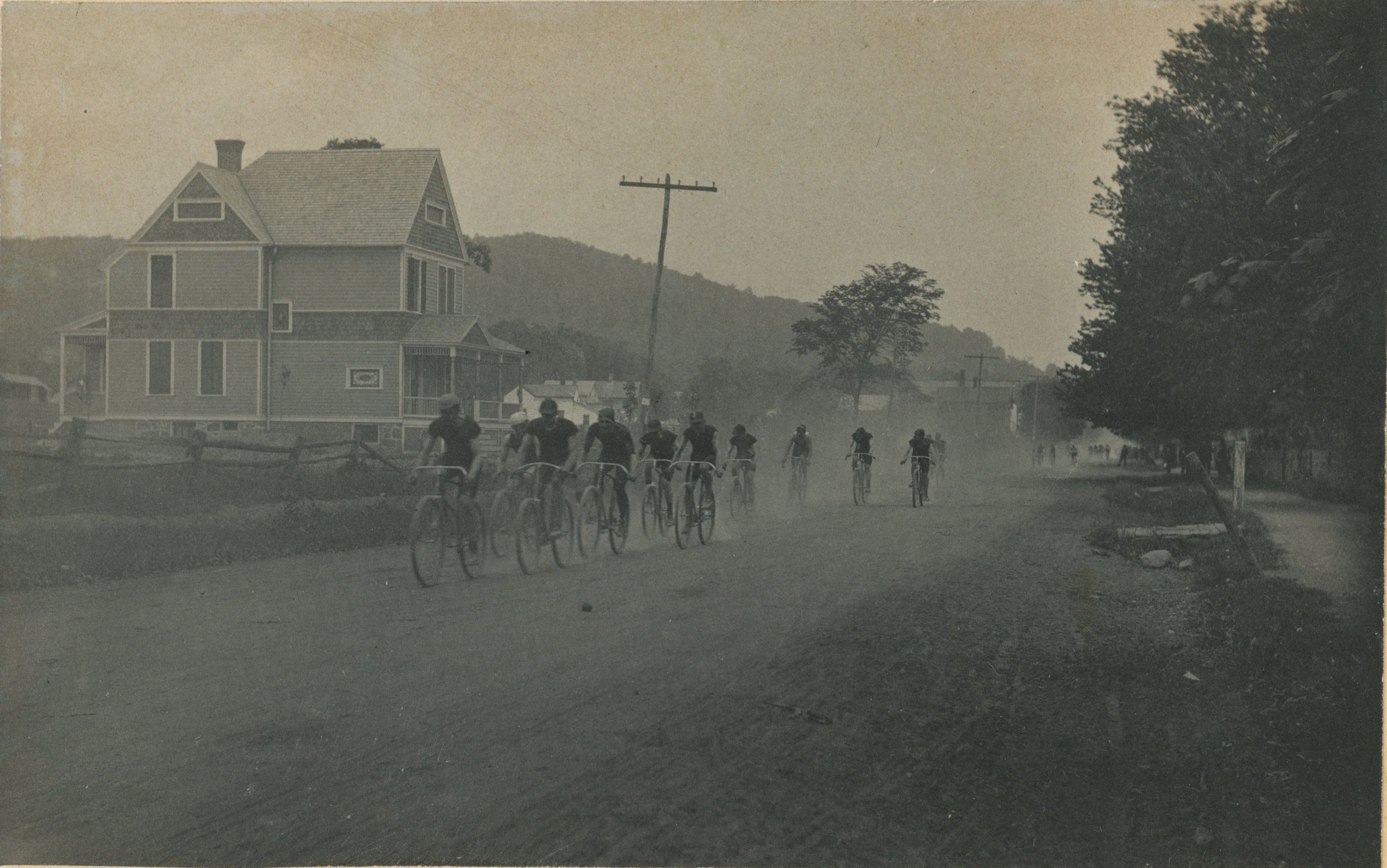 Irvington-Millburn Road Race: Photograph of Racers passing 393 Millburn Avenue, c. 1900