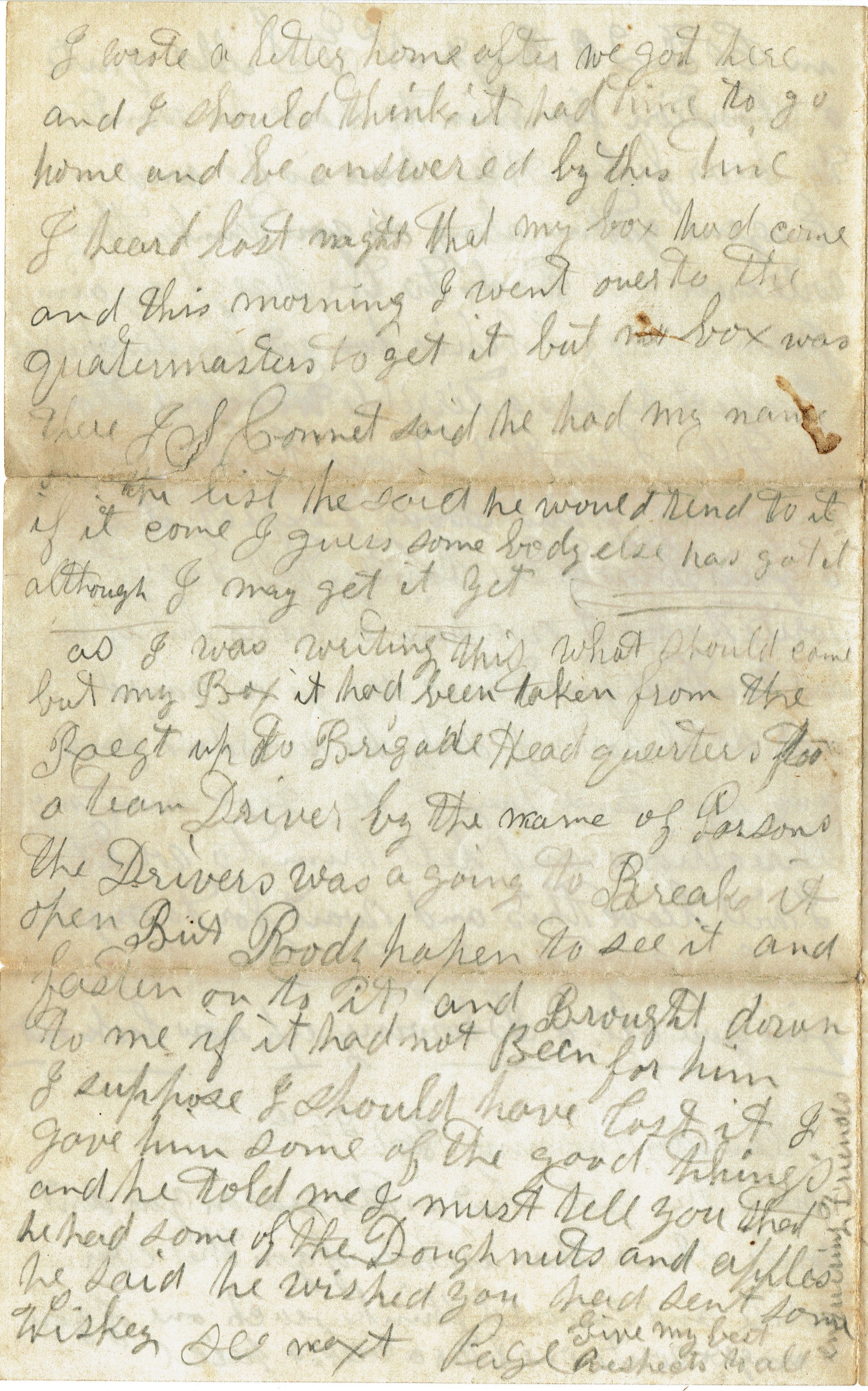 Parsil: Samuel B. Parsil Civil War Letter, February 25, 1863