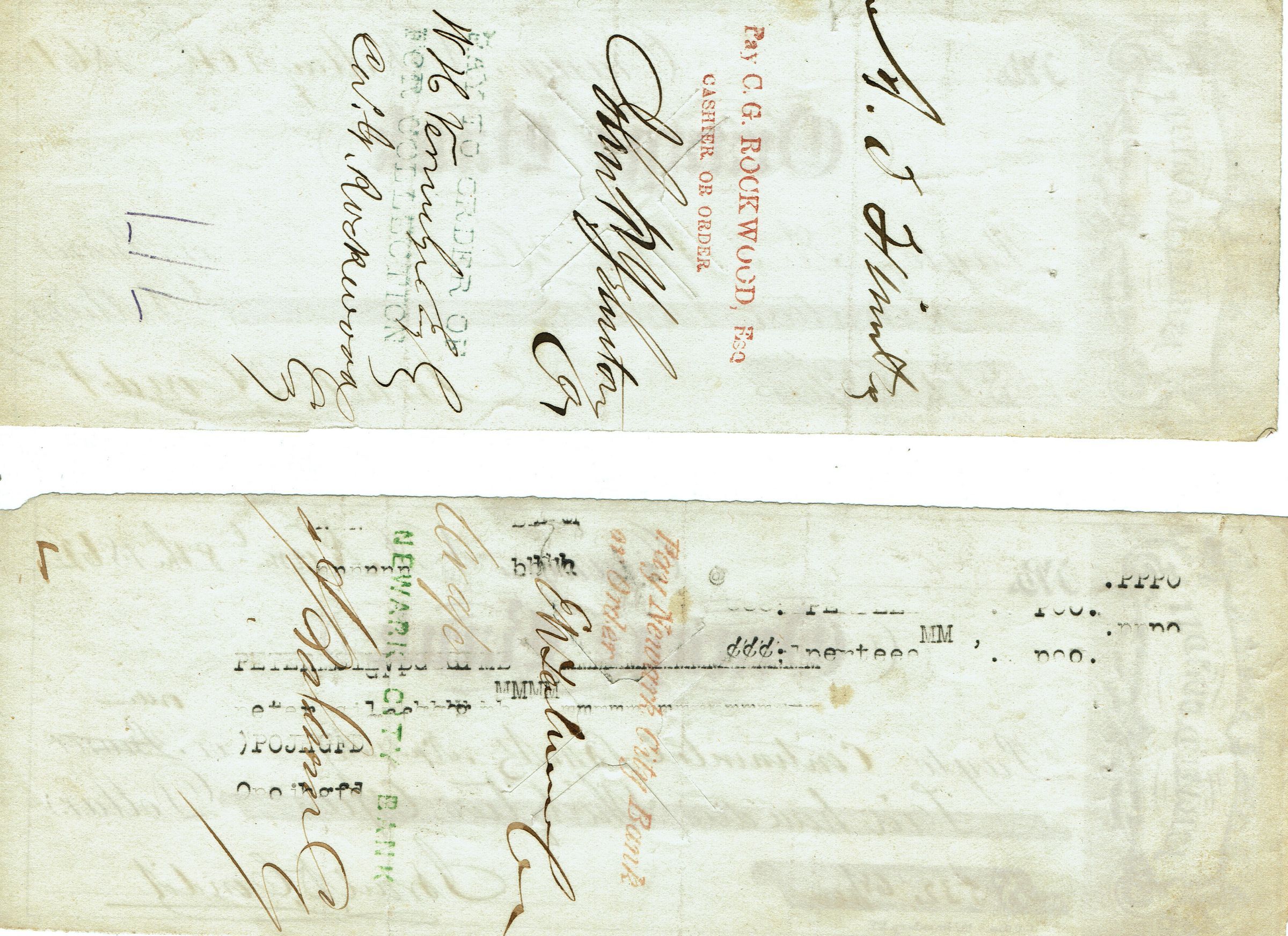 Condit: Israel Condit Promissory Note and Checks, 1862