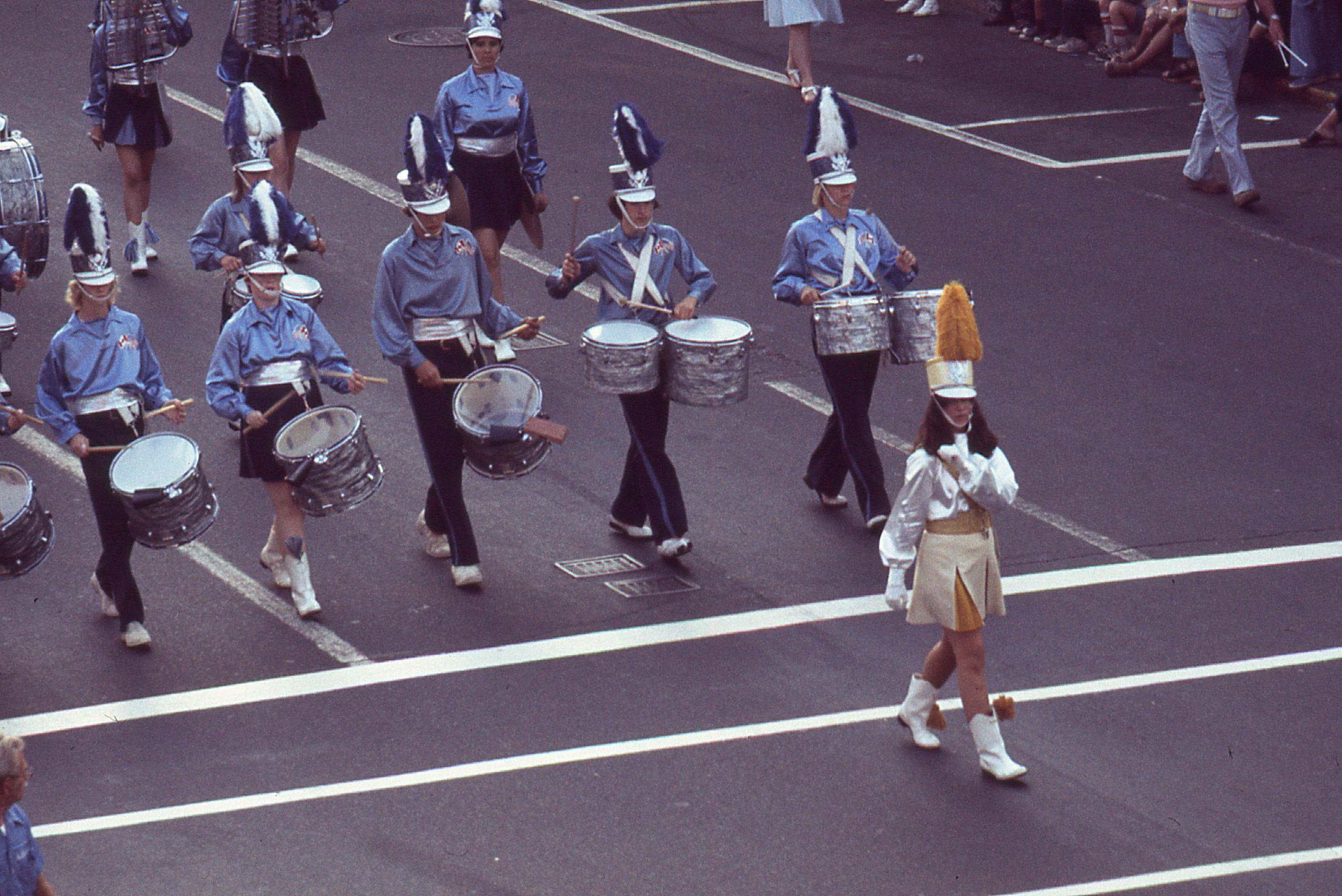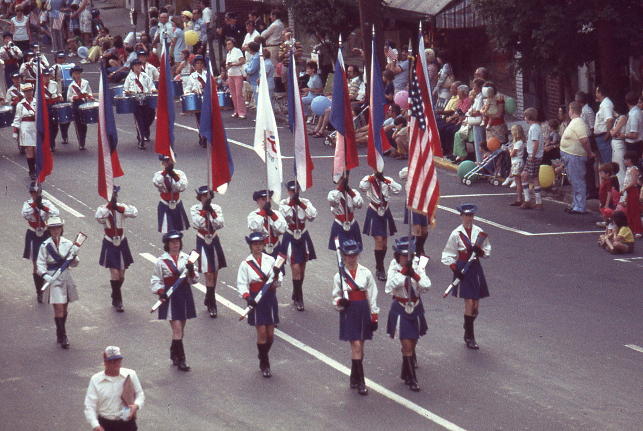 July 4: Marching Bands and Twirlers in American Bicentennial Parade, 1976