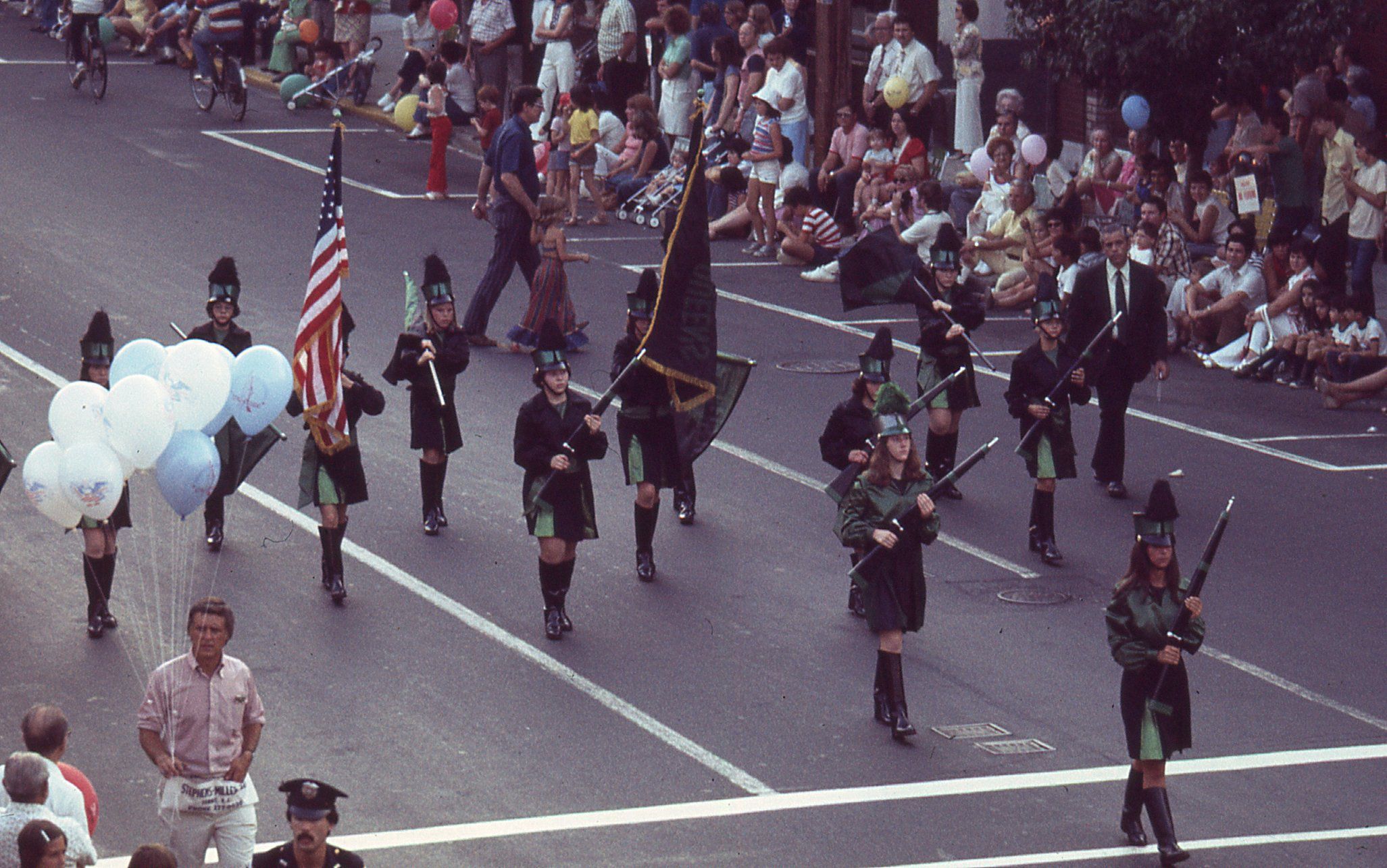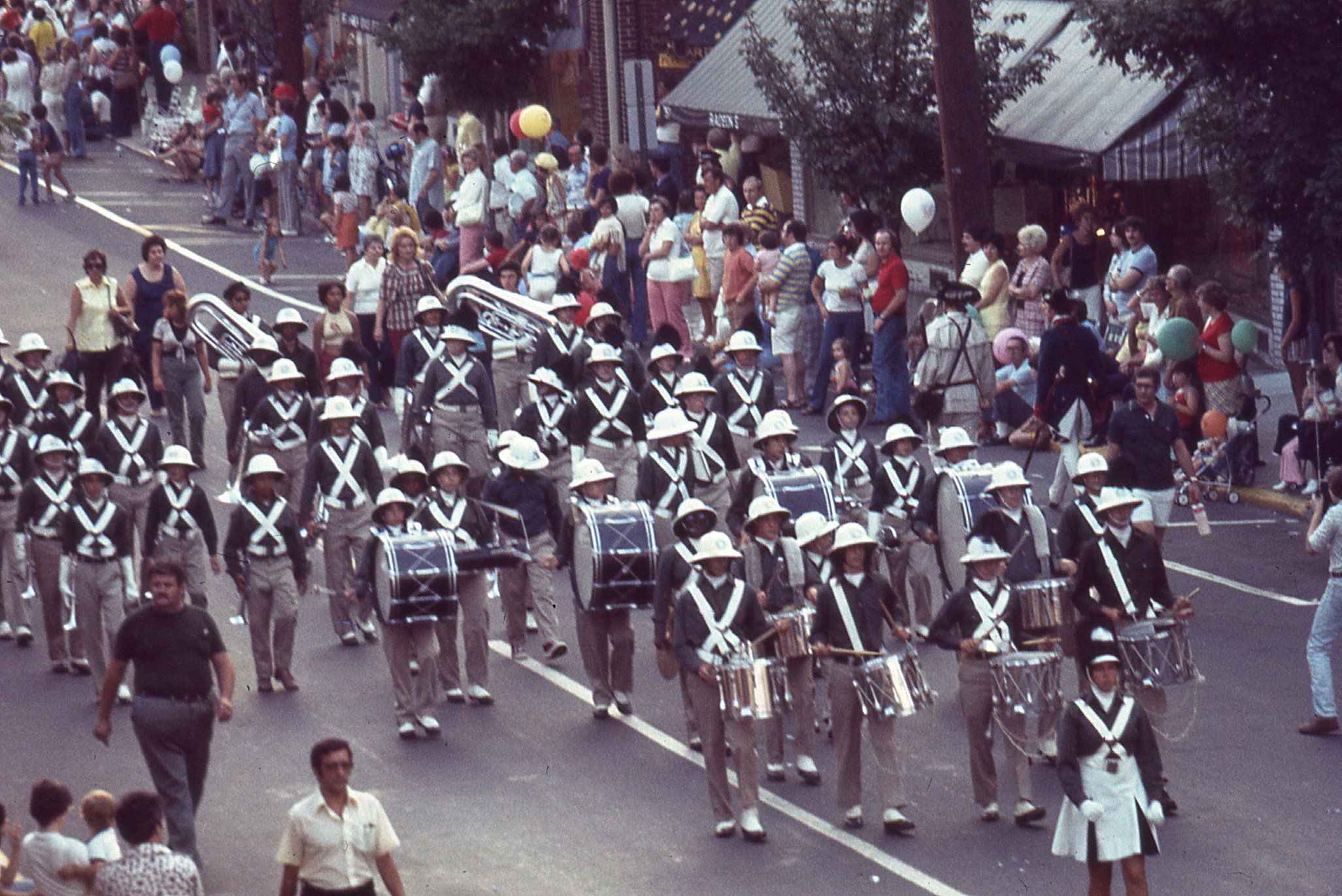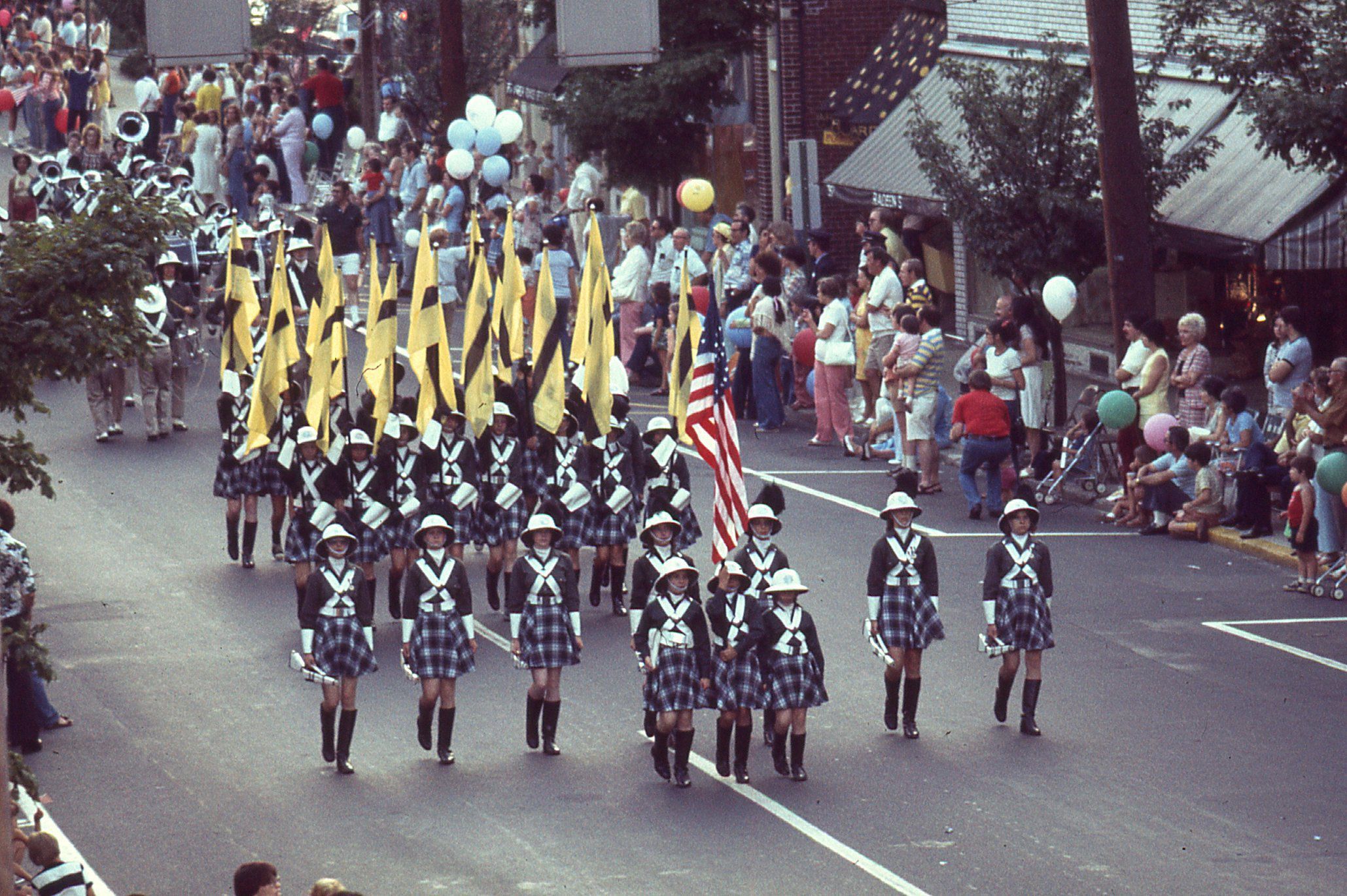 Photographs taken by Owen Lampe of marching bands and twirlers from Millburn and other towns in the July 2, 1976 parade on Millburn Avenue, celebrating the American Bicentennial.