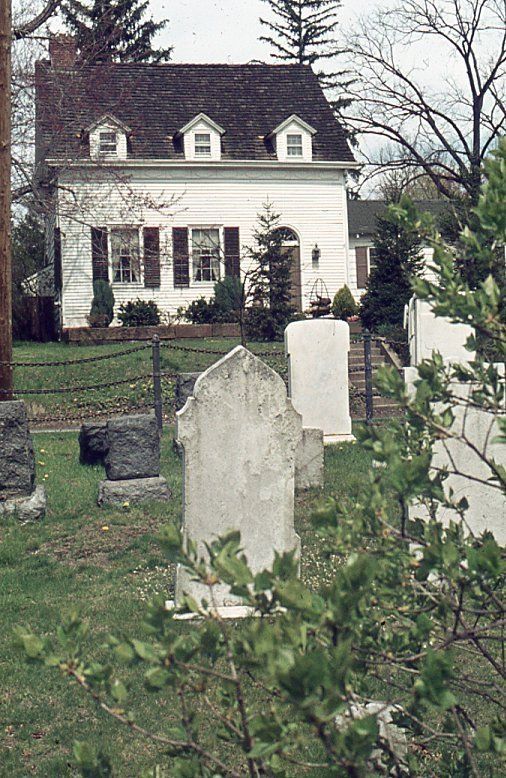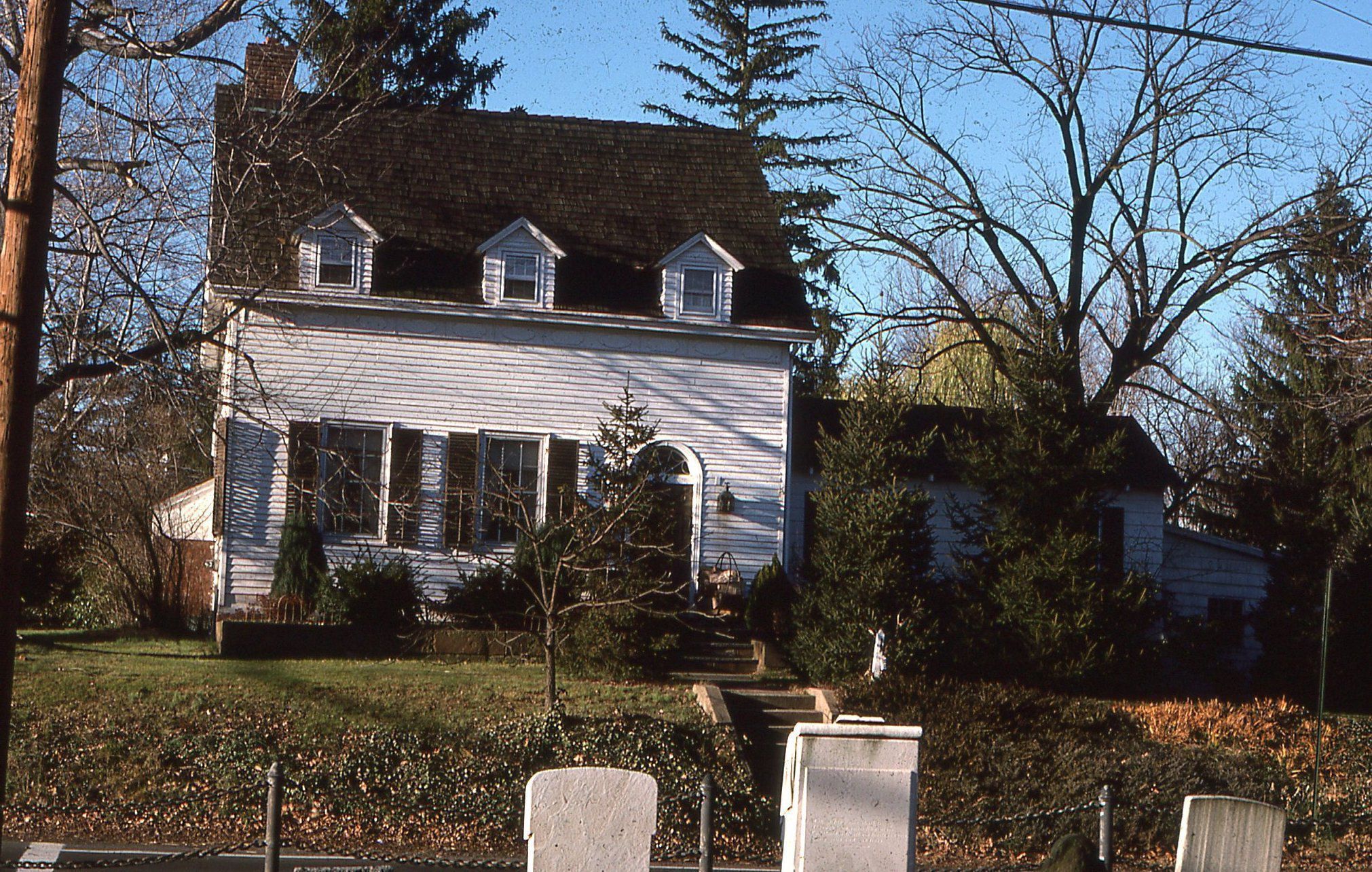 Photograph of the Parsil House and Revolutionary War cemetery across White Oak Ridge Road taken by Owen Lampe in December 1975, prior to the start of renovations.