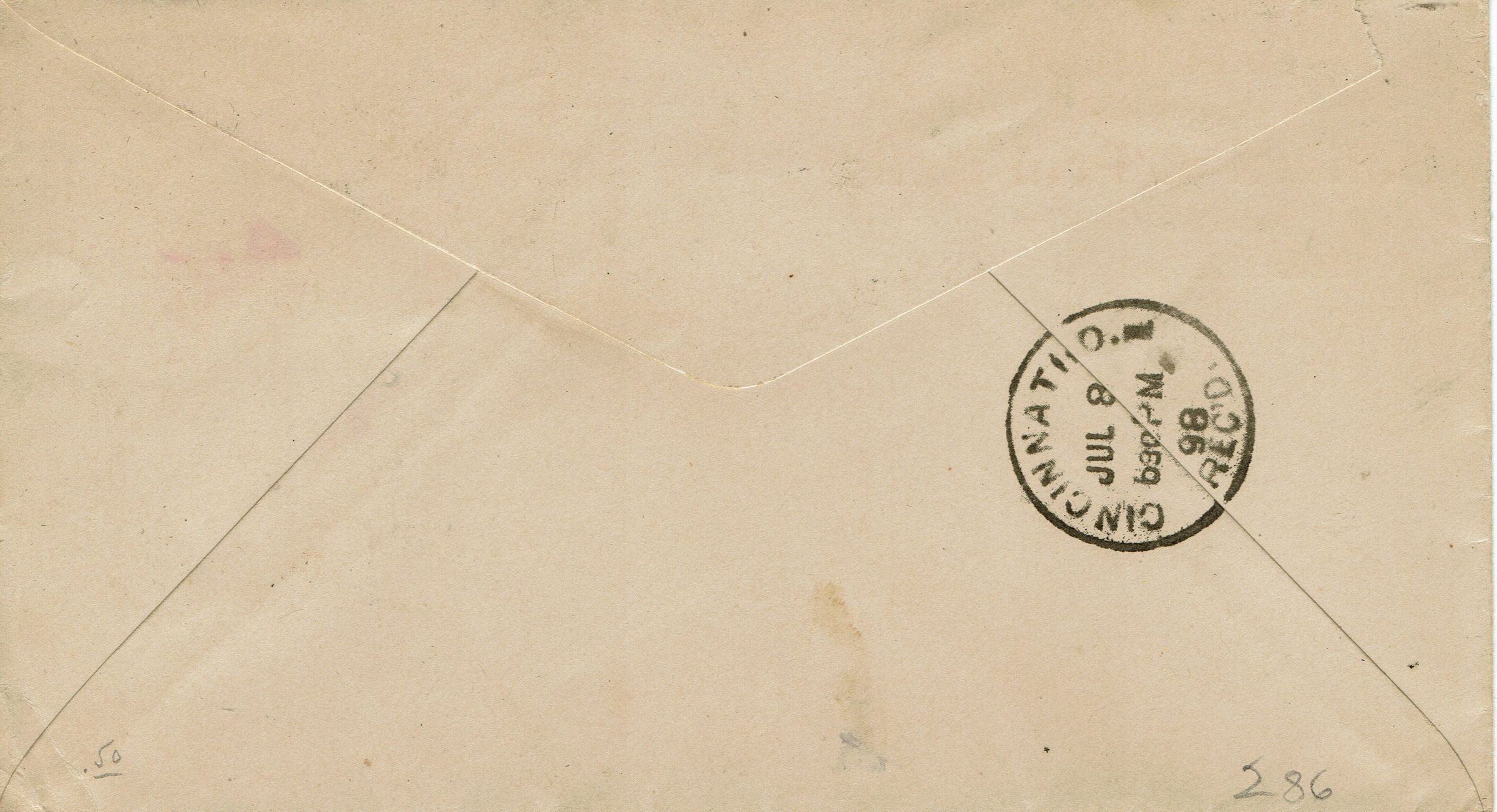 Postally used envelope from G.H. Burt, Manufacturer of Billiard & Pool Balls, Office and Factory, Millburn, NJ postmarked Millburn, July 7, 1898 12 M, addressed to The National Billiard Manufacturing Company, 6-8-10 West Canal Street, Cincinnati, Ohio, and received on July 8, 1898, 6:30 pm.