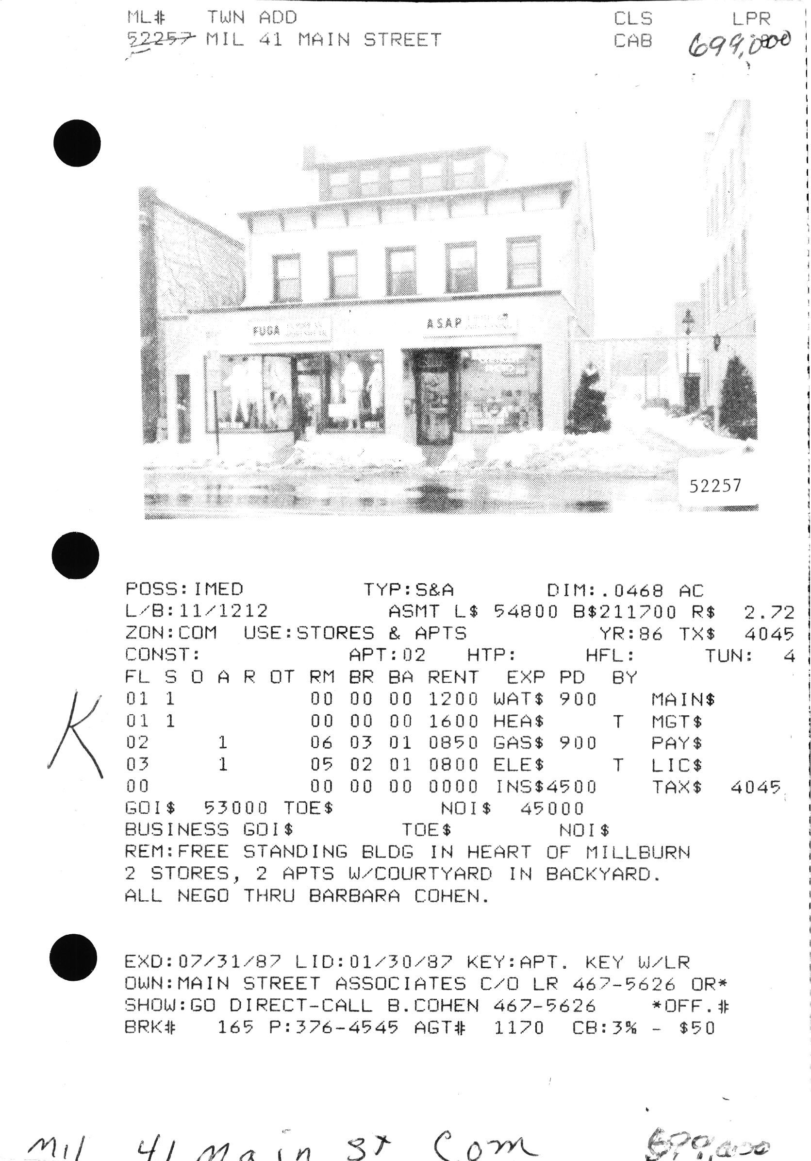 41 Main Street, Millburn was constructed in c. 1920 and contains retail and apartments.