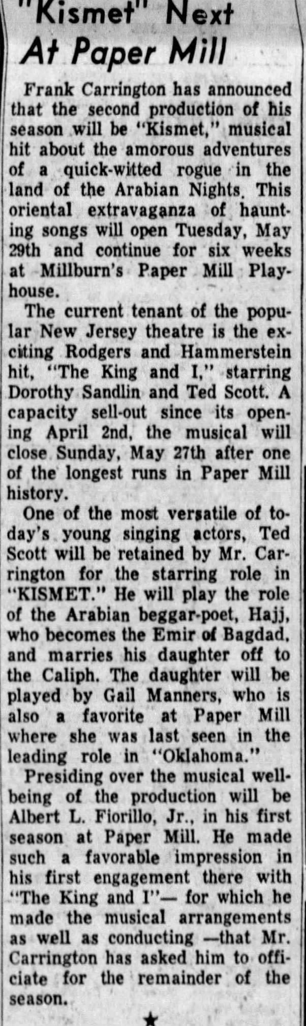 Paper Mill Playhouse Press Photo: Kismet, 1956