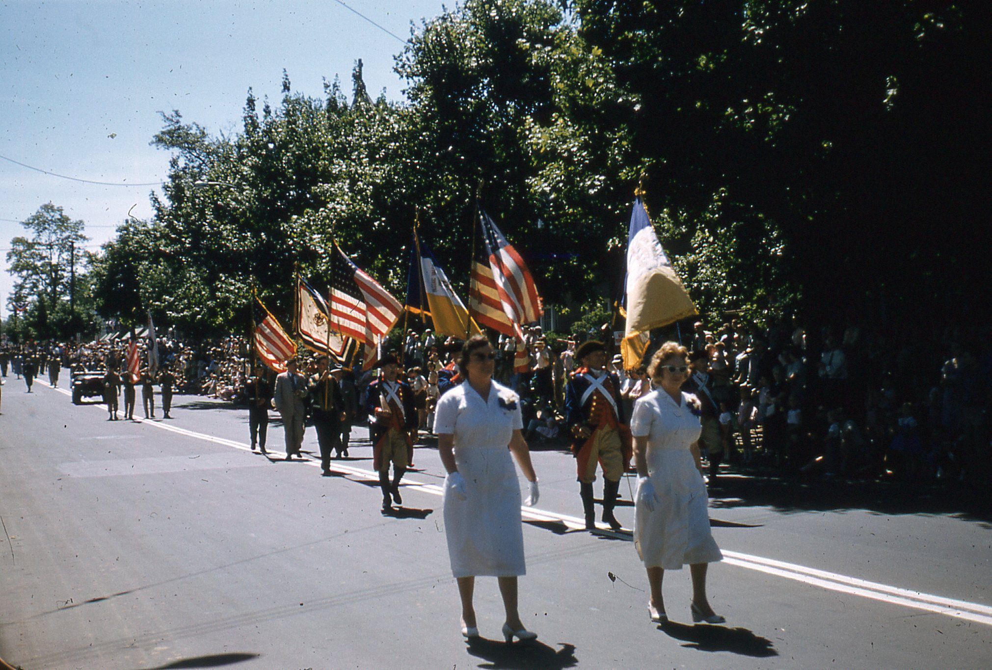 Photographs of military and local civic groups on Millburn Avenue in the Millburn Centennial Parade, May 25, 1957.