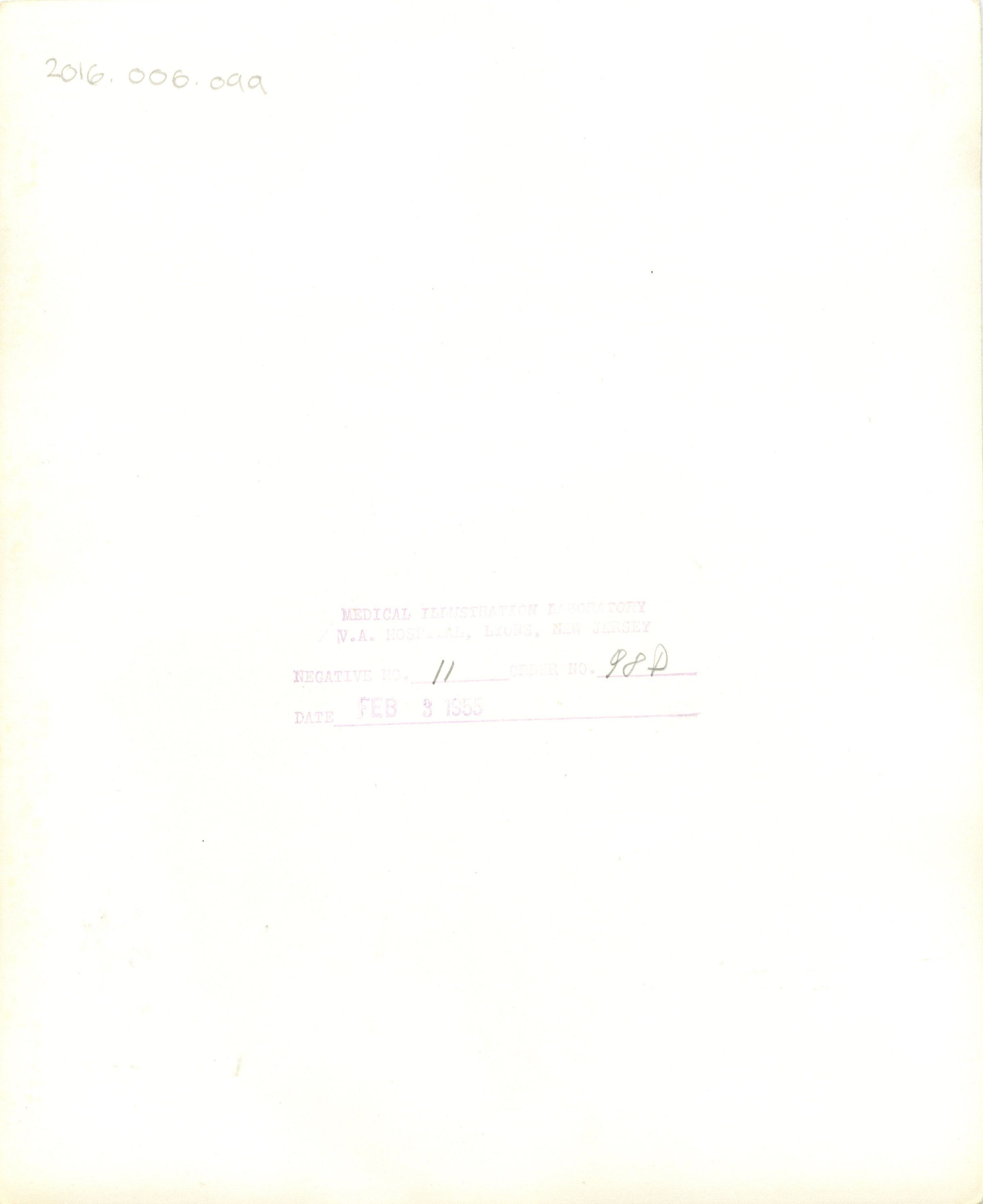 Medial Illustration Laboratory, V.A Hospital, Lyons, New Jersey. Negative No. 11 order No. 98 D. Date Feb 3 1955