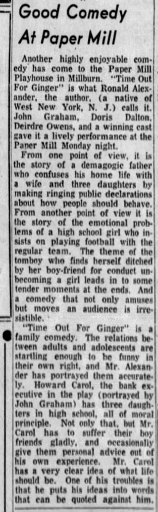 Paper Mill Playhouse Press Photo: Time Out for Ginger, 1954