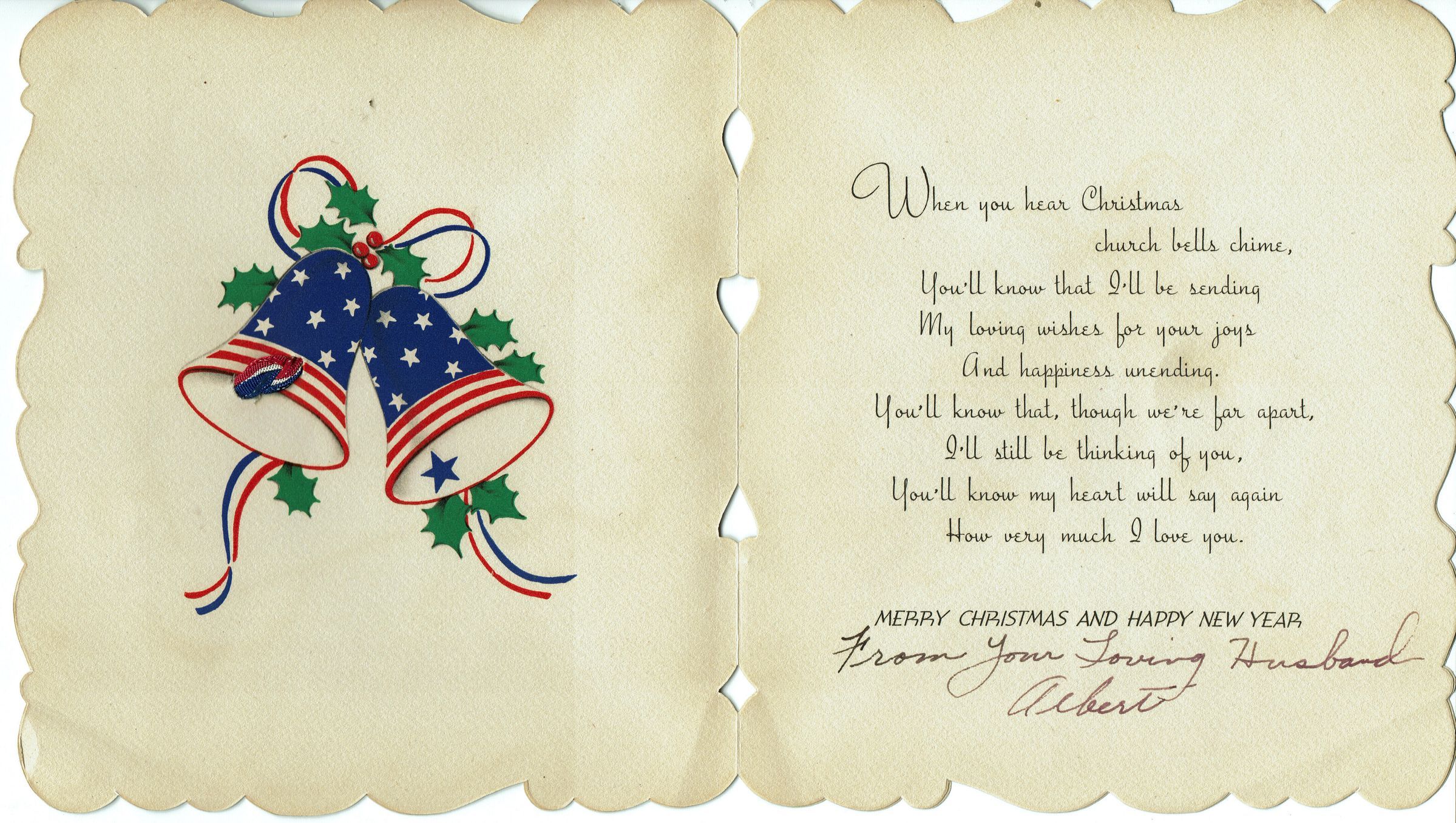 Dante: Christmas Card from Albert Dante to Wife Isabel from Europe during WWII