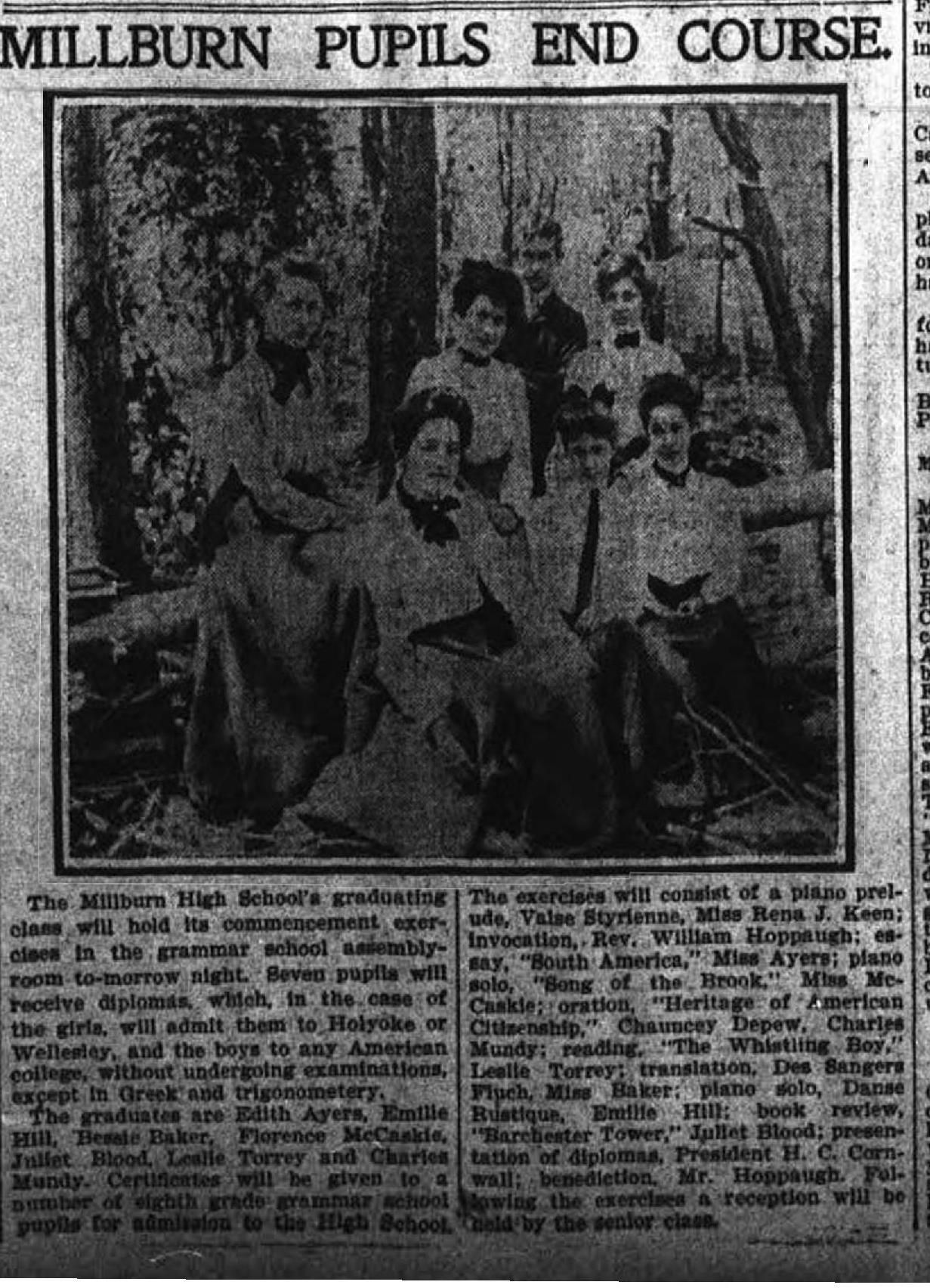 Flanagan Scrapbook: Millburn High School Graduates, 1902