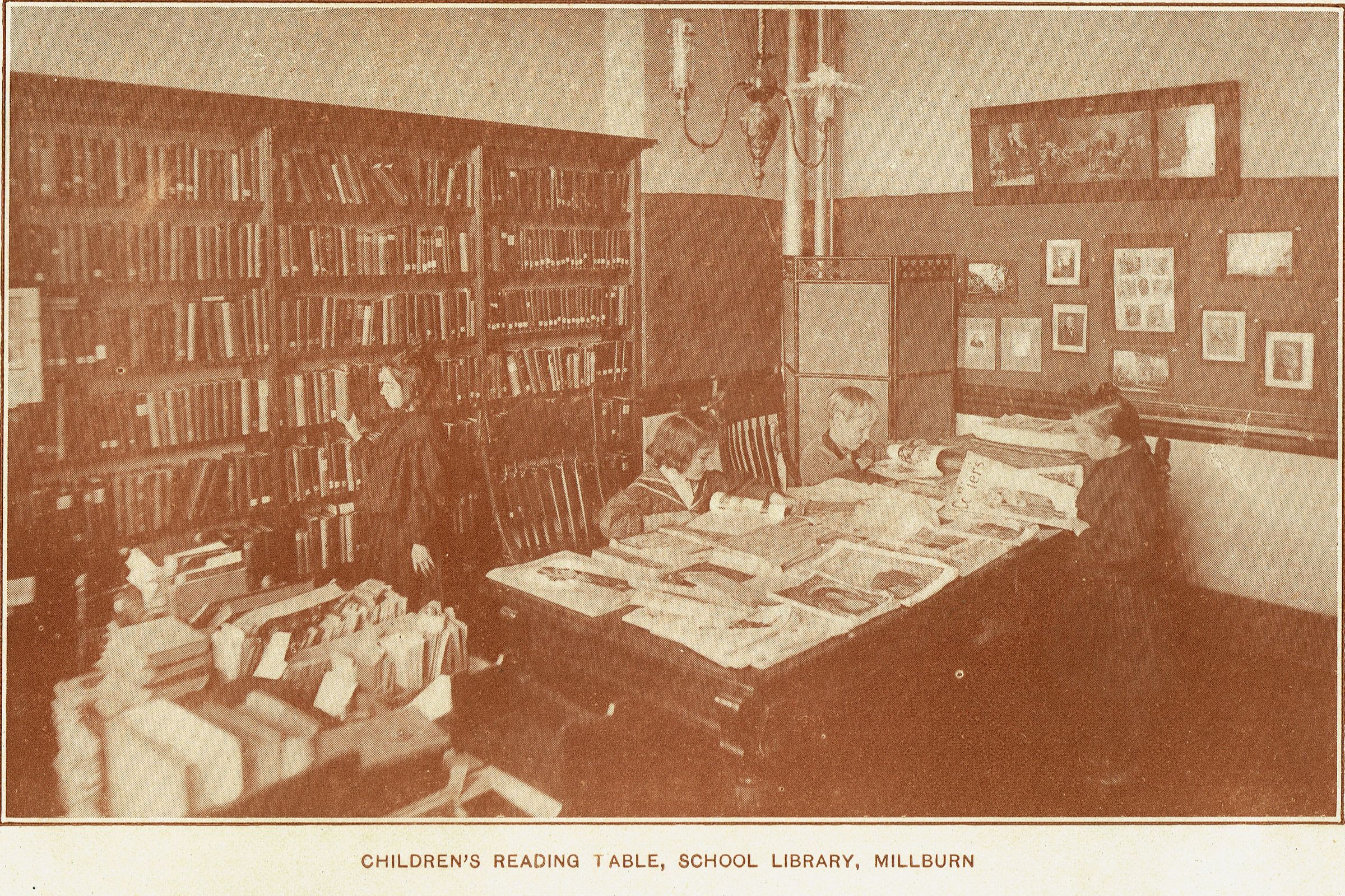 Annual Report of the Board of Education of Millburn Township, March 1908. 26 pp., illustrated with B&W photographs of High School Art Class and Children's Reading Table. Report contains listing of teachers, schools, Supervising Principal J. Albert Kale's report, 1907 financial report, and an outline of the course of study for K-12. Board of Education Members were: William Fellowes Morgan, John Fall, James W. Purdy, Jr., John H. Schmid, Jr., JOhn B. Mayer, Frank M. Marshall, John W. Baker, A.S. Ross, Clifford Willis and Edward C. Worden.