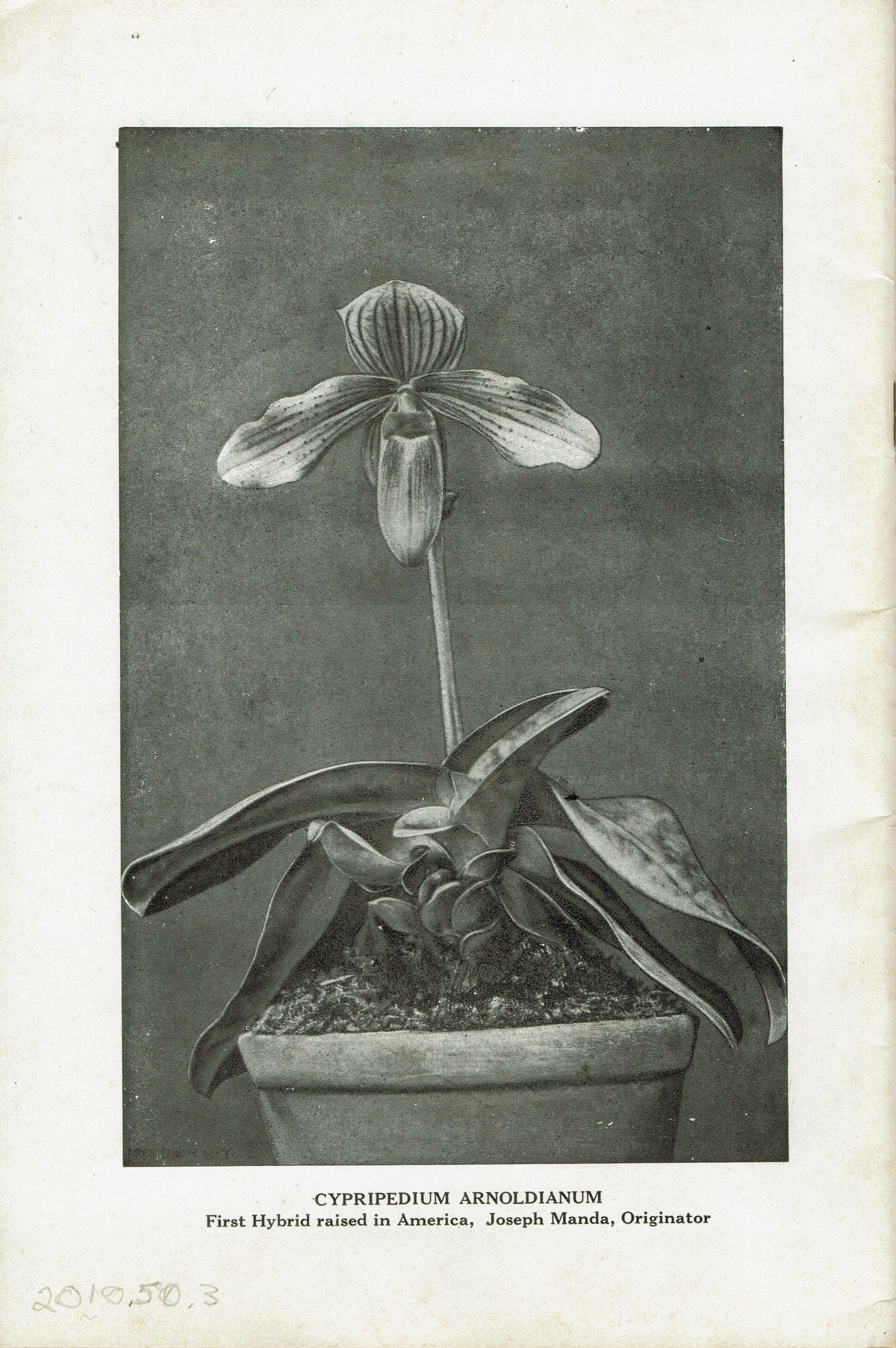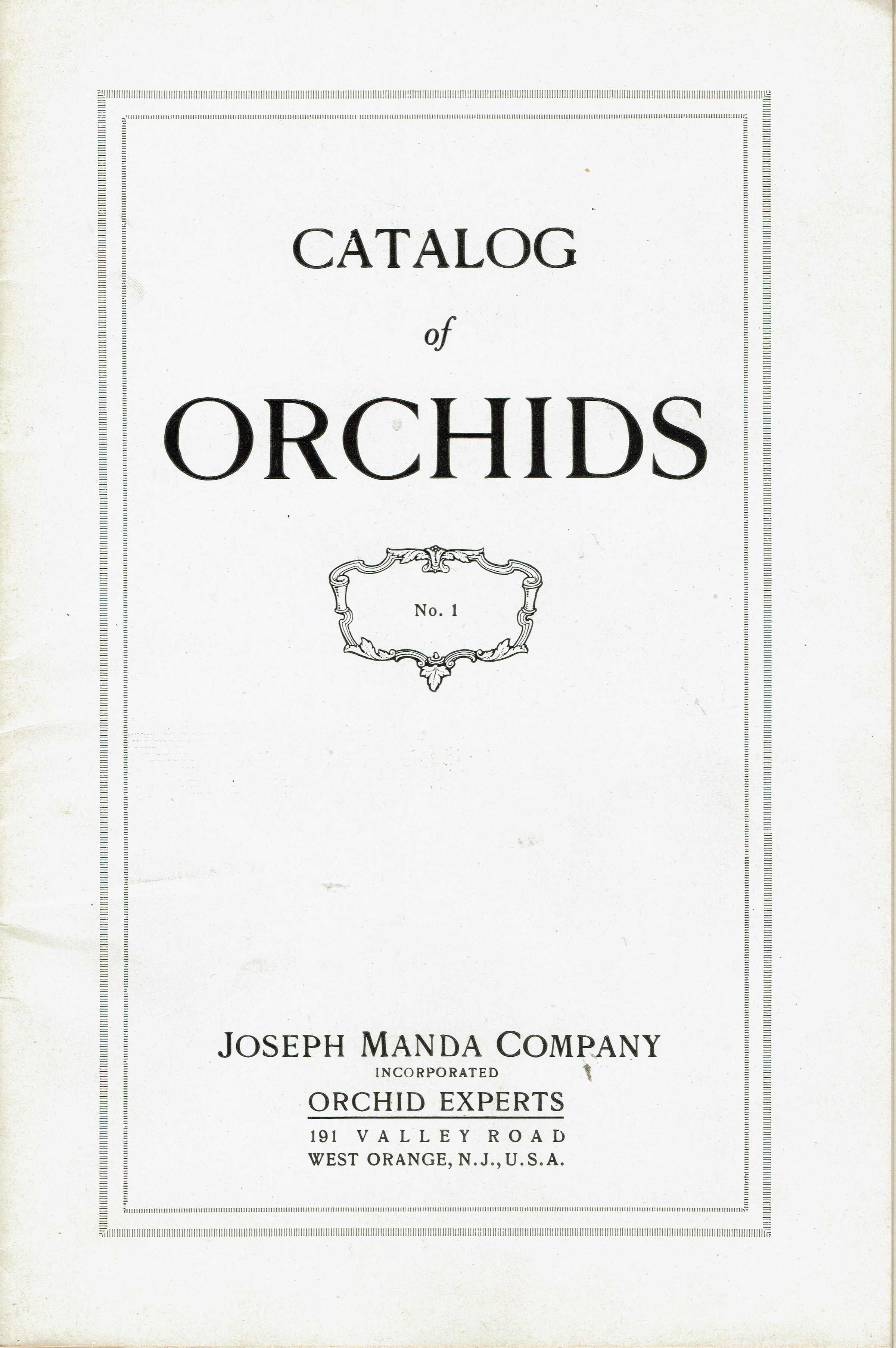 Catalog of Orchids No. 1, Joseph Manda Company Incorporated, Orchid Experts, 191 Valley Road, West Orange, N.J., undated. 32 pp., photographic covers. Introduction states that it is the company's first catalog of orchids. The catalog lists species according to country of origin, description of hybrids includes parentage.