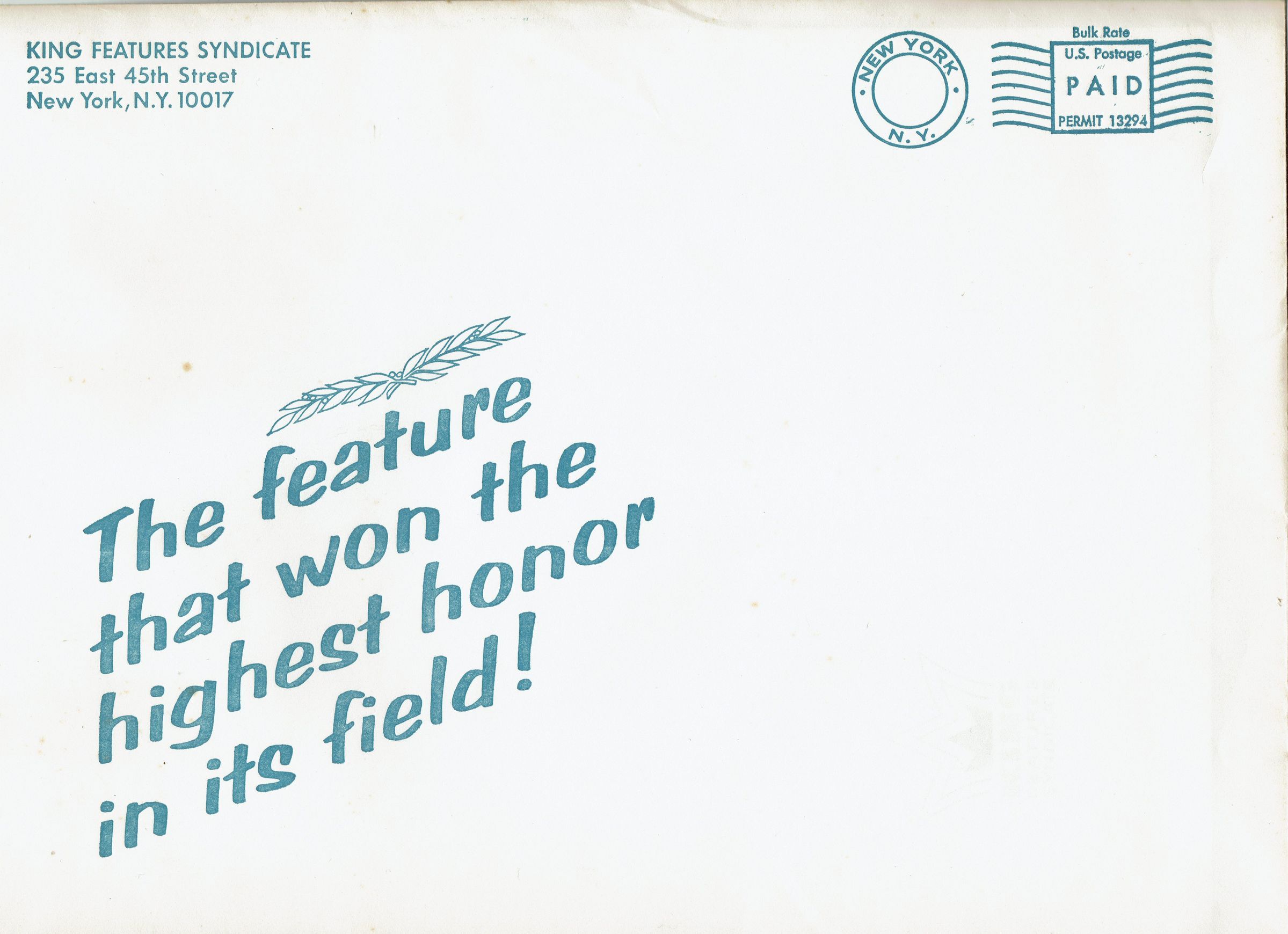 Envelopes from King Features Syndicate with promotional publications relating to Bob Dunn. Unopened. One is entitled "How to Make Your Newspaper Your Reader's Favorite Pin Up!"