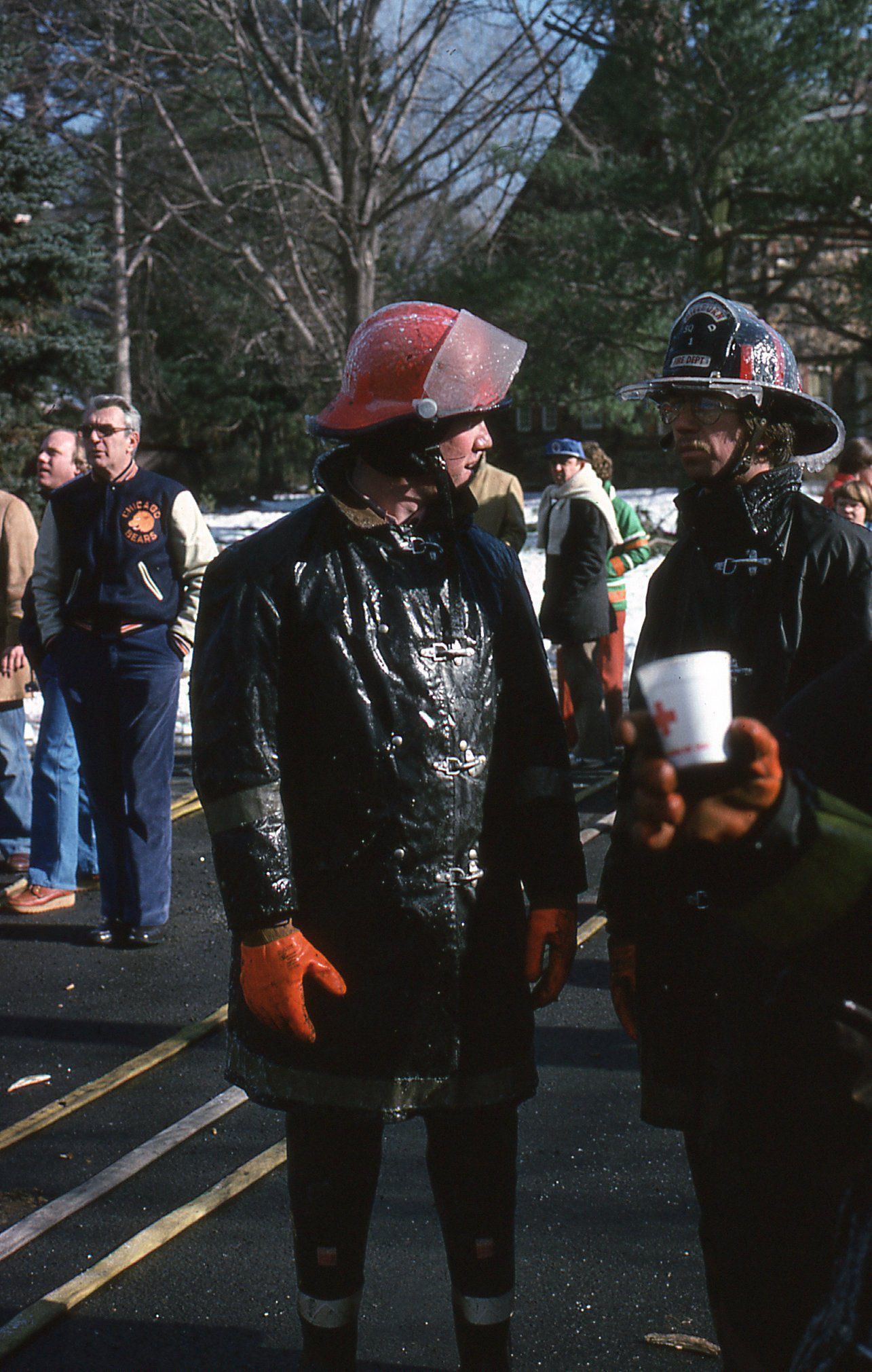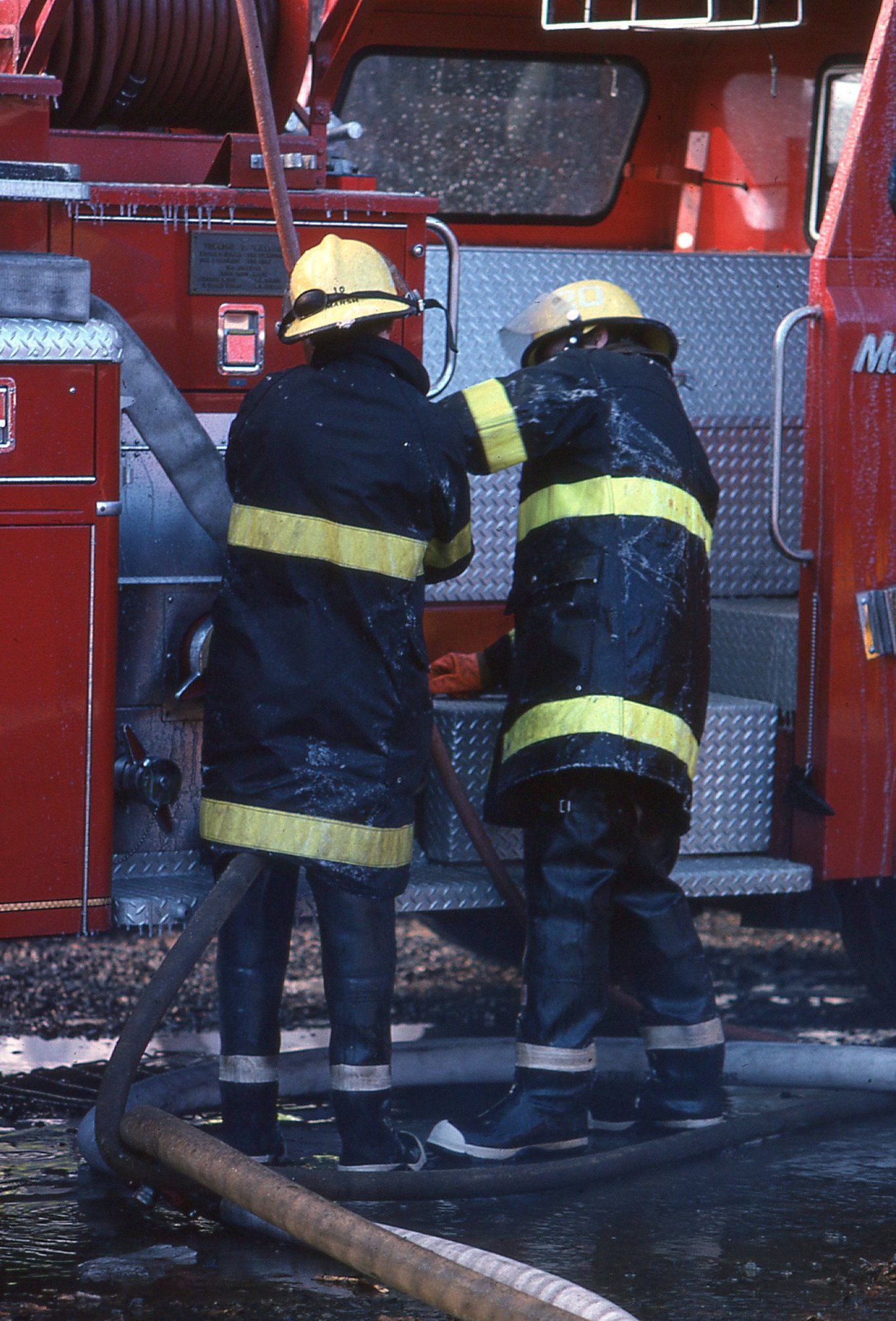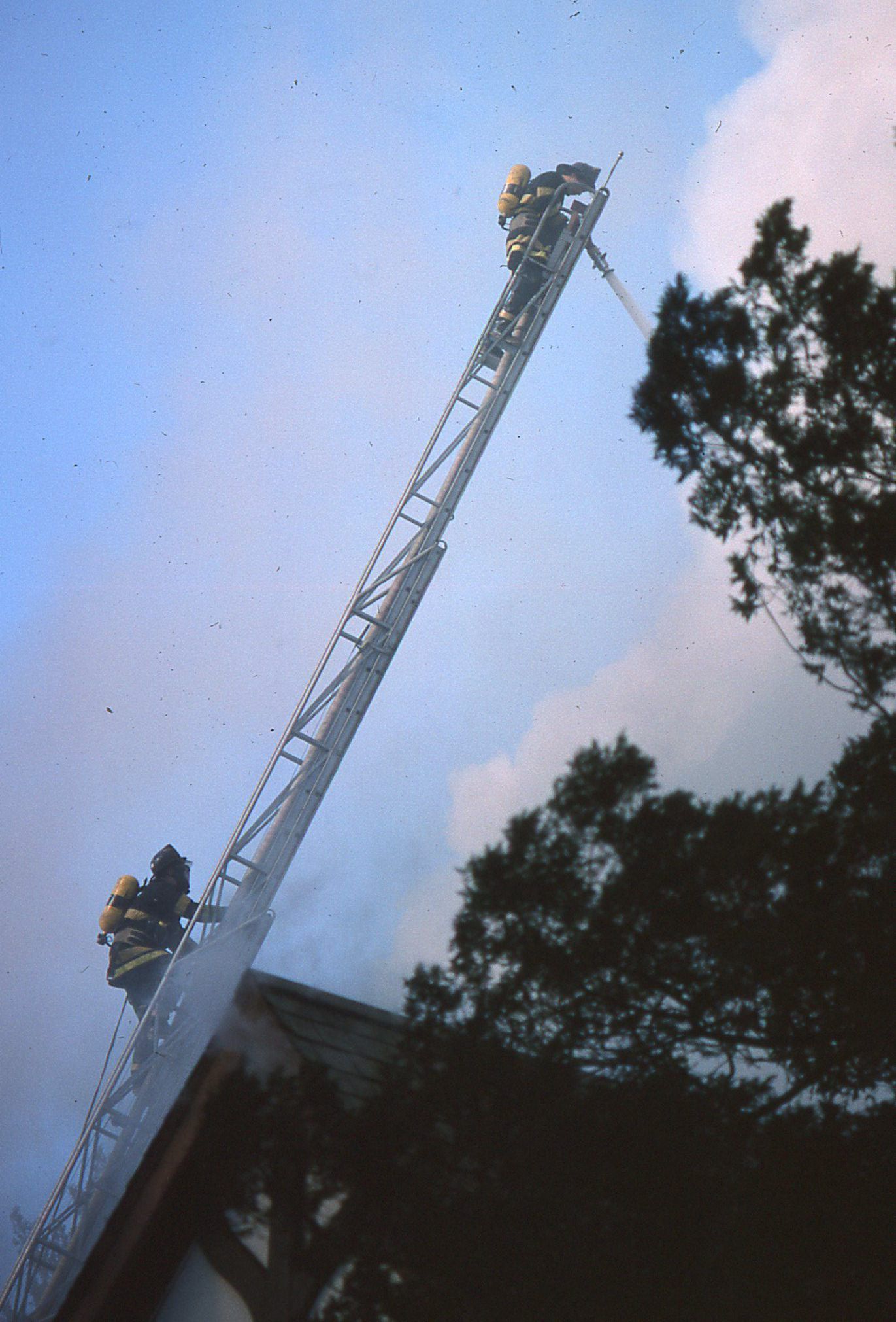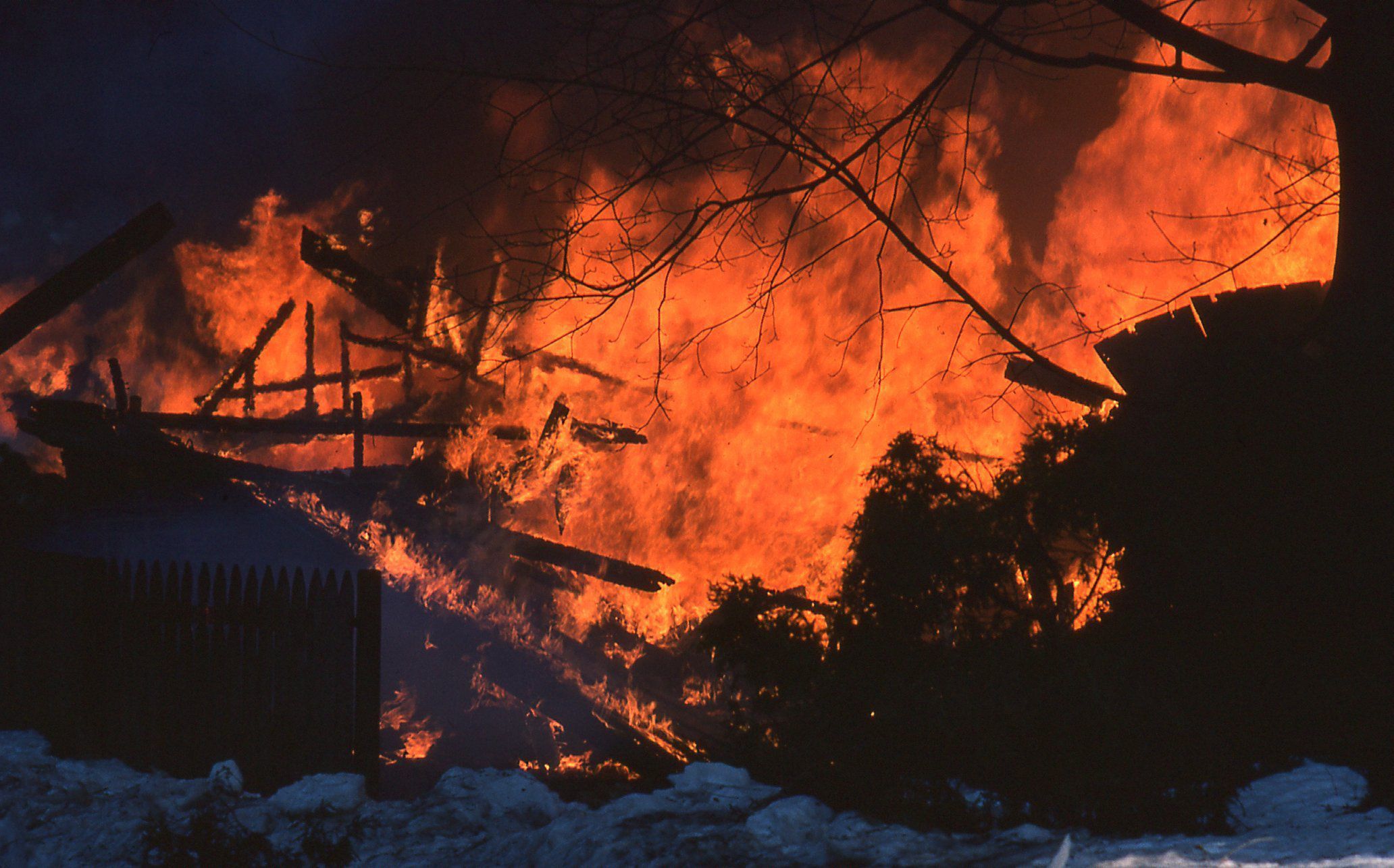54 Color photographs of the fire that destroyed the Racquets Club in Short Hills in February 1978 taken by Peter Mackersie. The photographs focus on the fire, the firefighters, and the aftermath of the blaze.