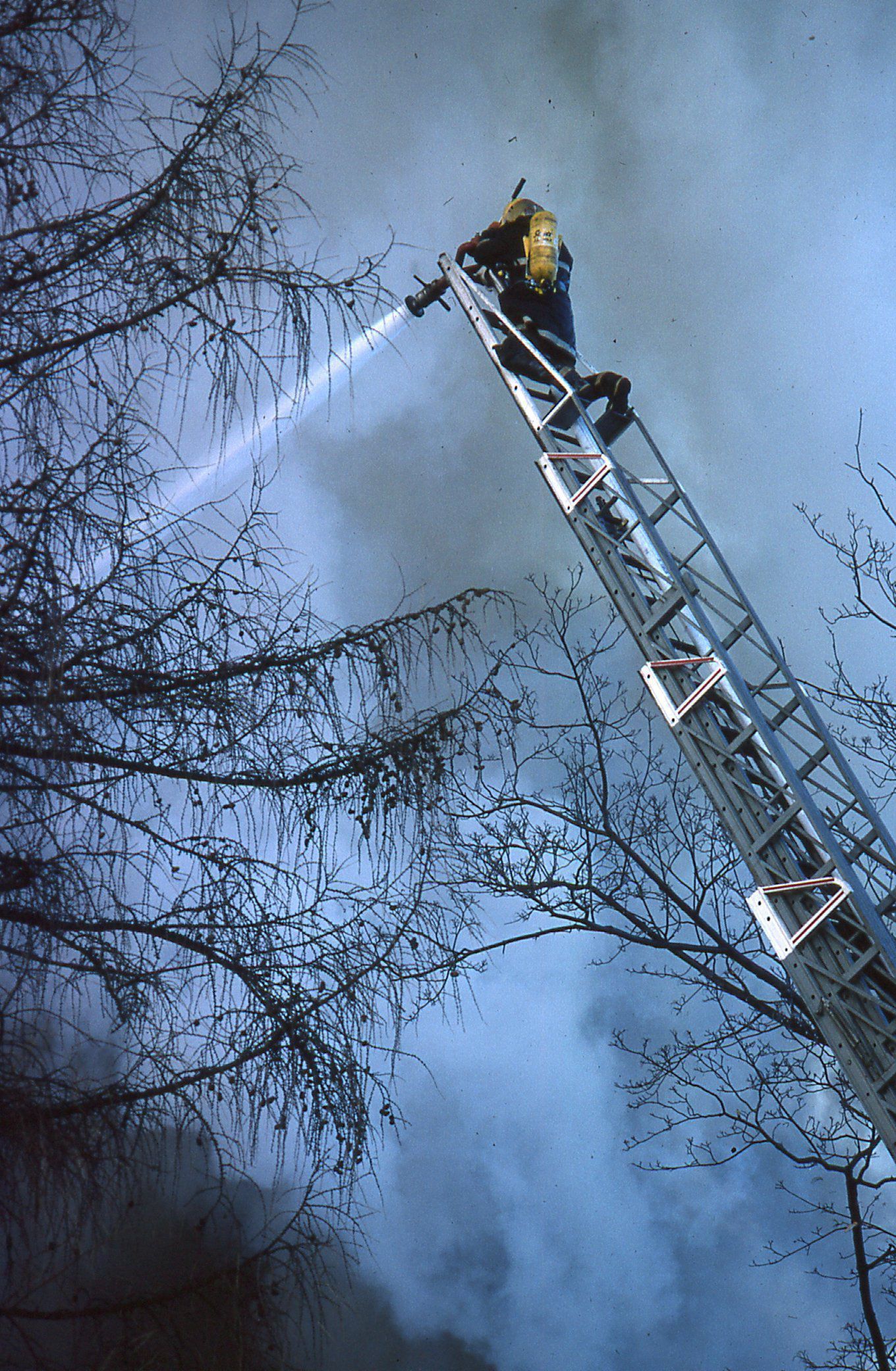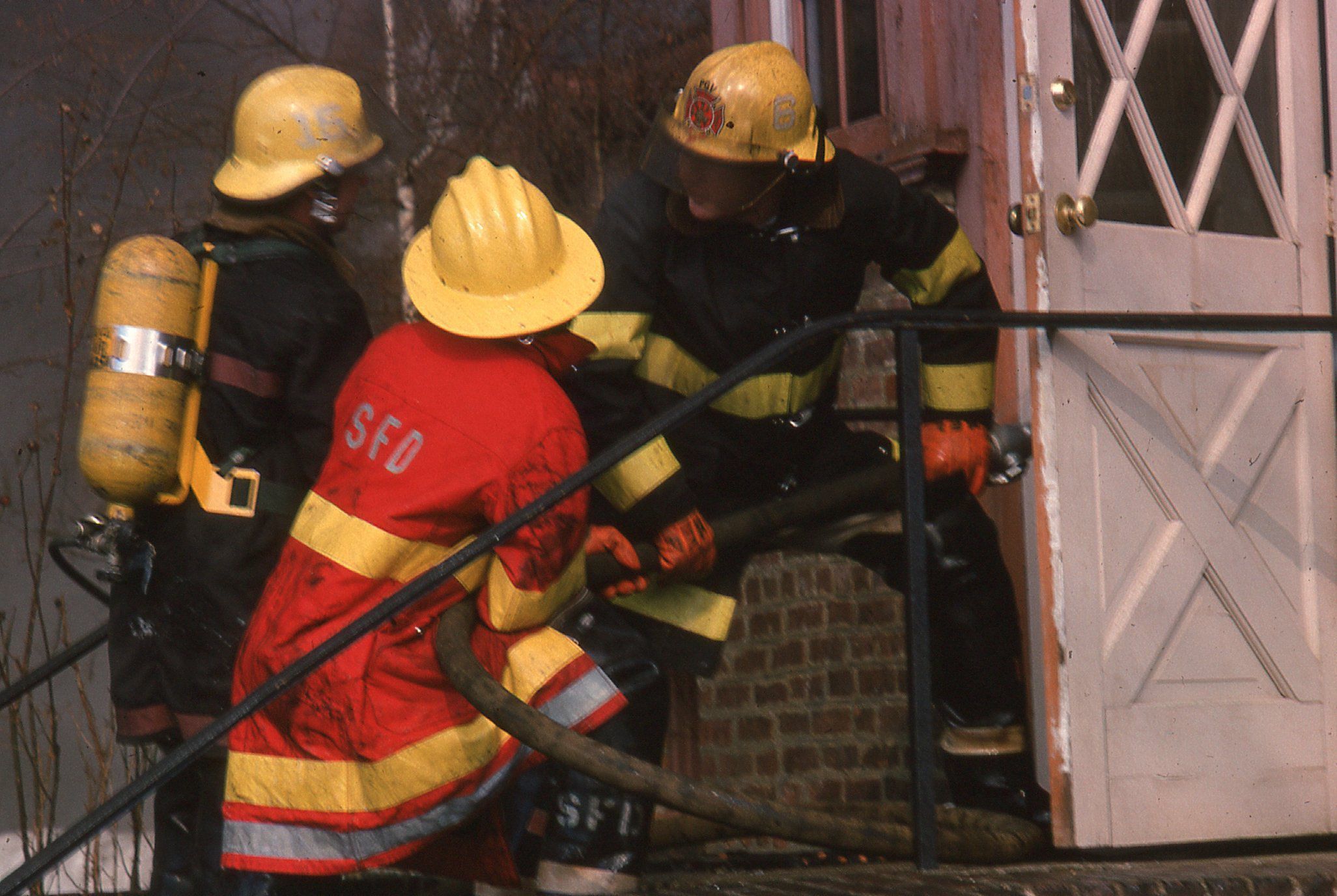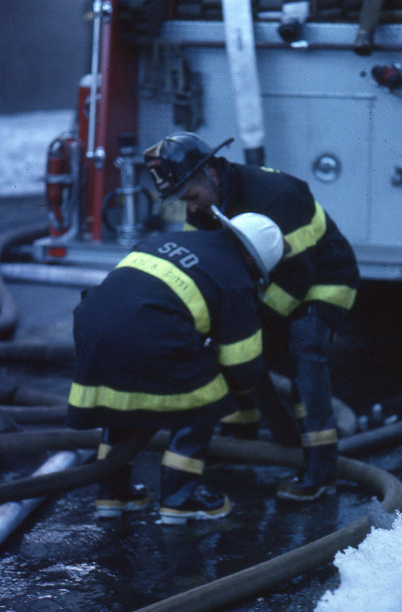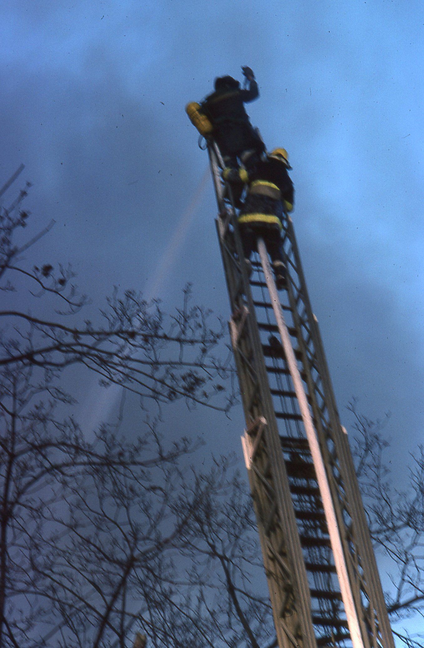 54 Color photographs of the fire that destroyed the Racquets Club in Short Hills in February 1978 taken by Peter Mackersie. The photographs focus on the fire, the firefighters, and the aftermath of the blaze.