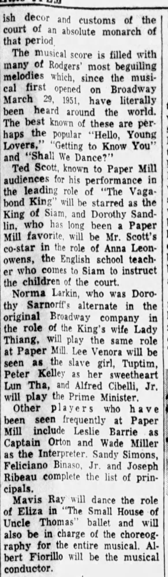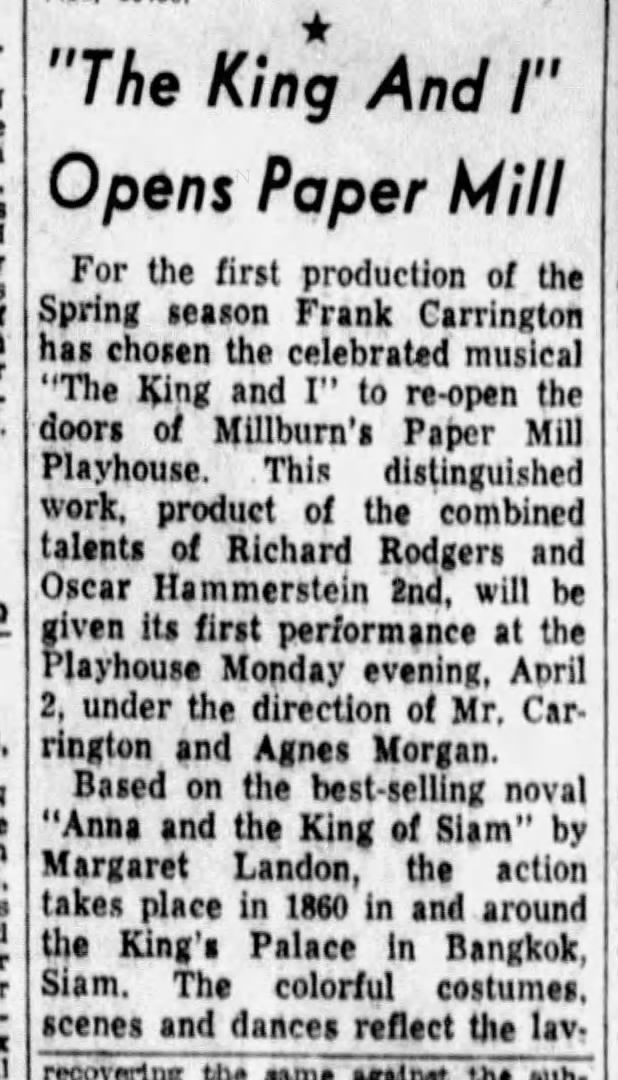 Paper Mill Playhouse Press Photo: King and I, 1956