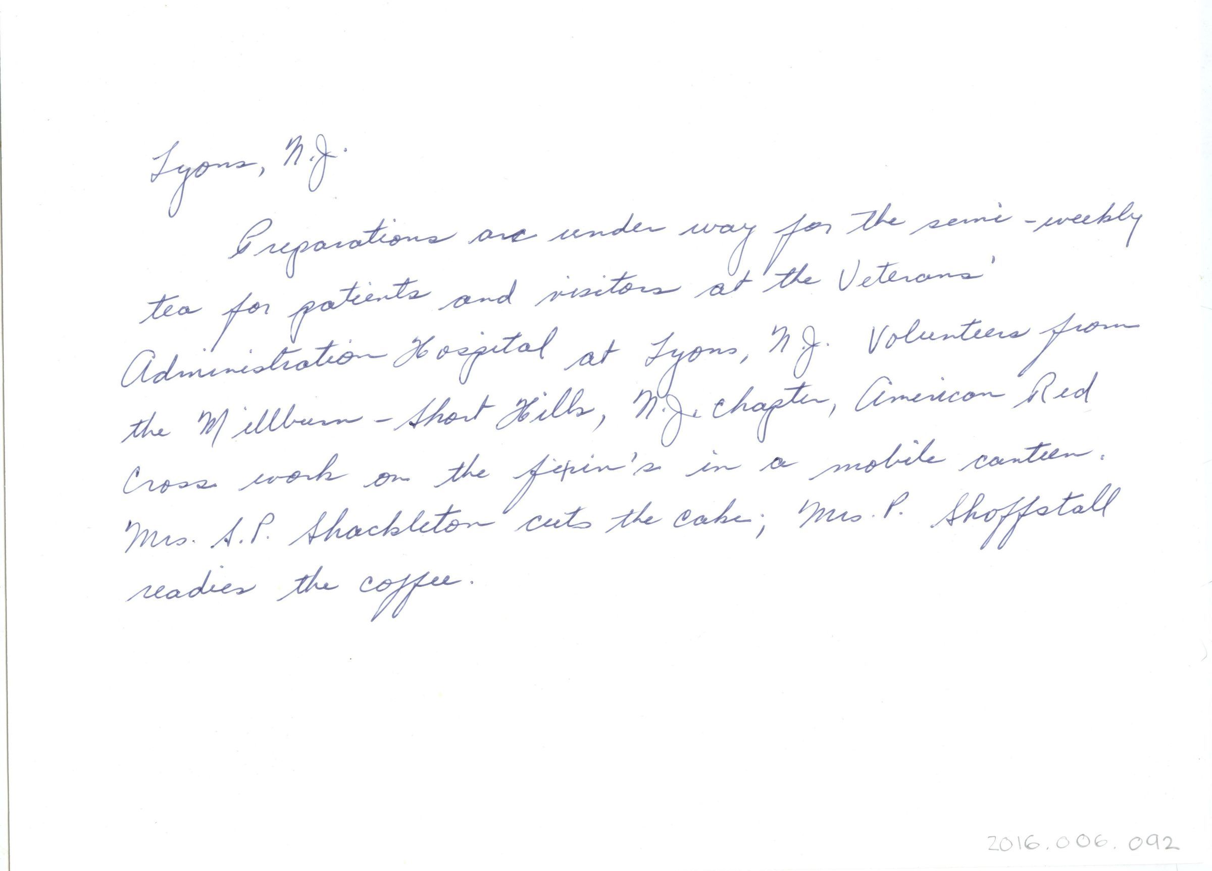 Red Cross: Veterans tea preparation. Lyons N.J