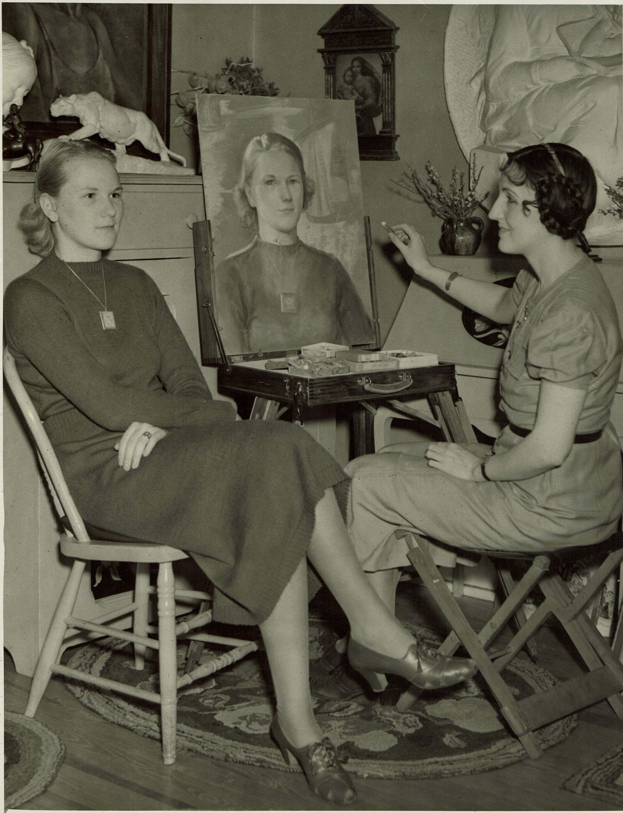 Millburn Art Center 1946 Scrapbook: Mary Black Diller Paints a Portrait, 1946