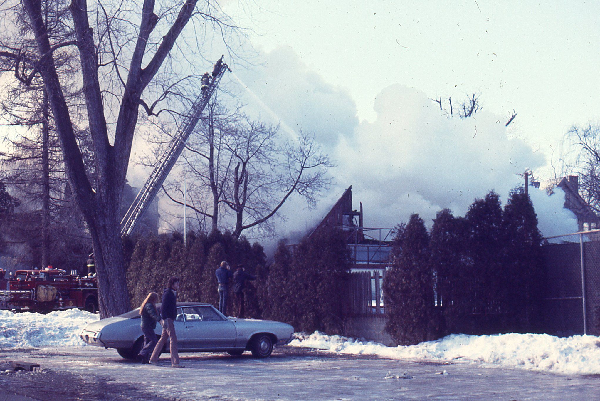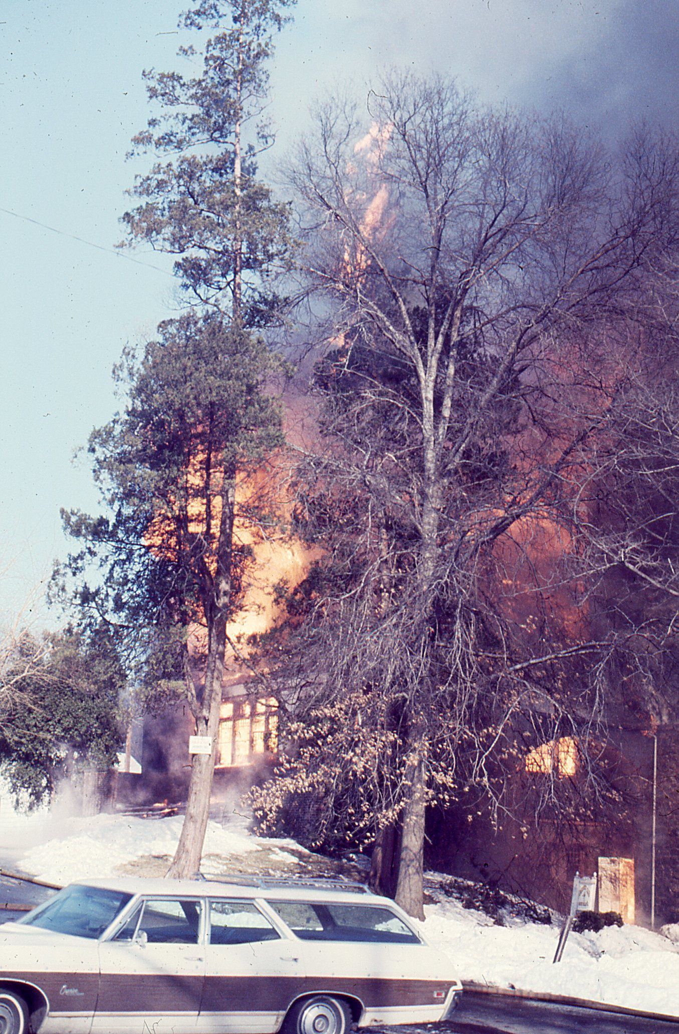 Color photographs (27) of the fire that destroyed the Racquet's Club, Short Hills on February 4, 1978 taken by Owen Lampe.