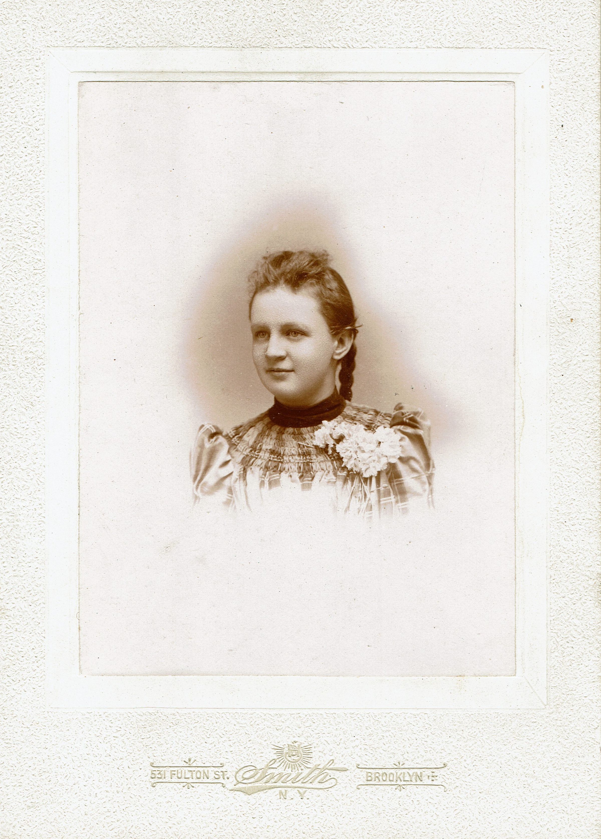 Photograph of Elizabeth Kellogg's only daughter, Florence Sherman Kellogg (1879-1894). Multiple copies of this photograph are in the collection. Some were intended as gifts after Florence's death. One inscription reads "For Katie April 1895," another indicates "For Miss Hill." The photographs were taken by D.H. Smith, 531 Fulton Street, Brooklyn.