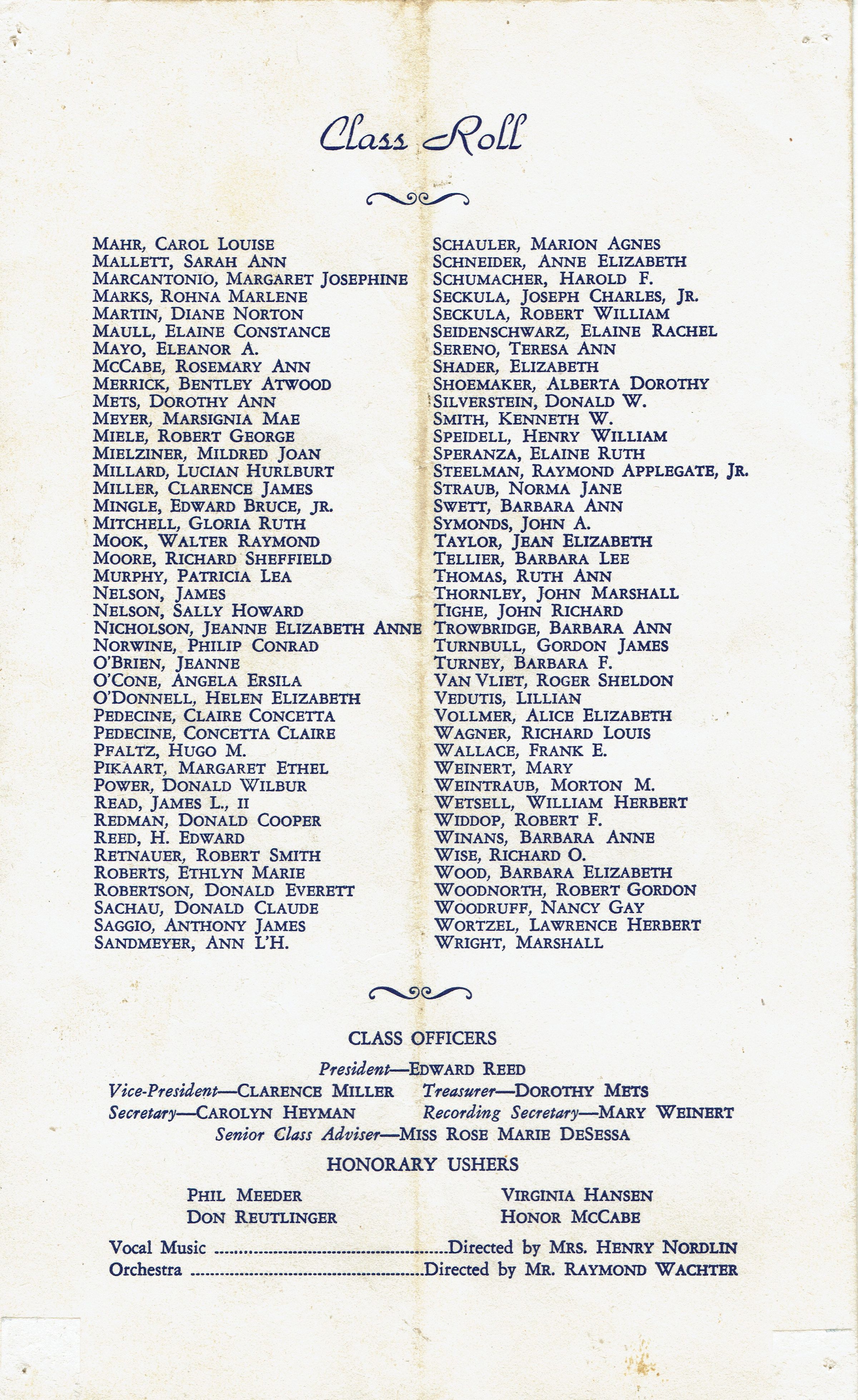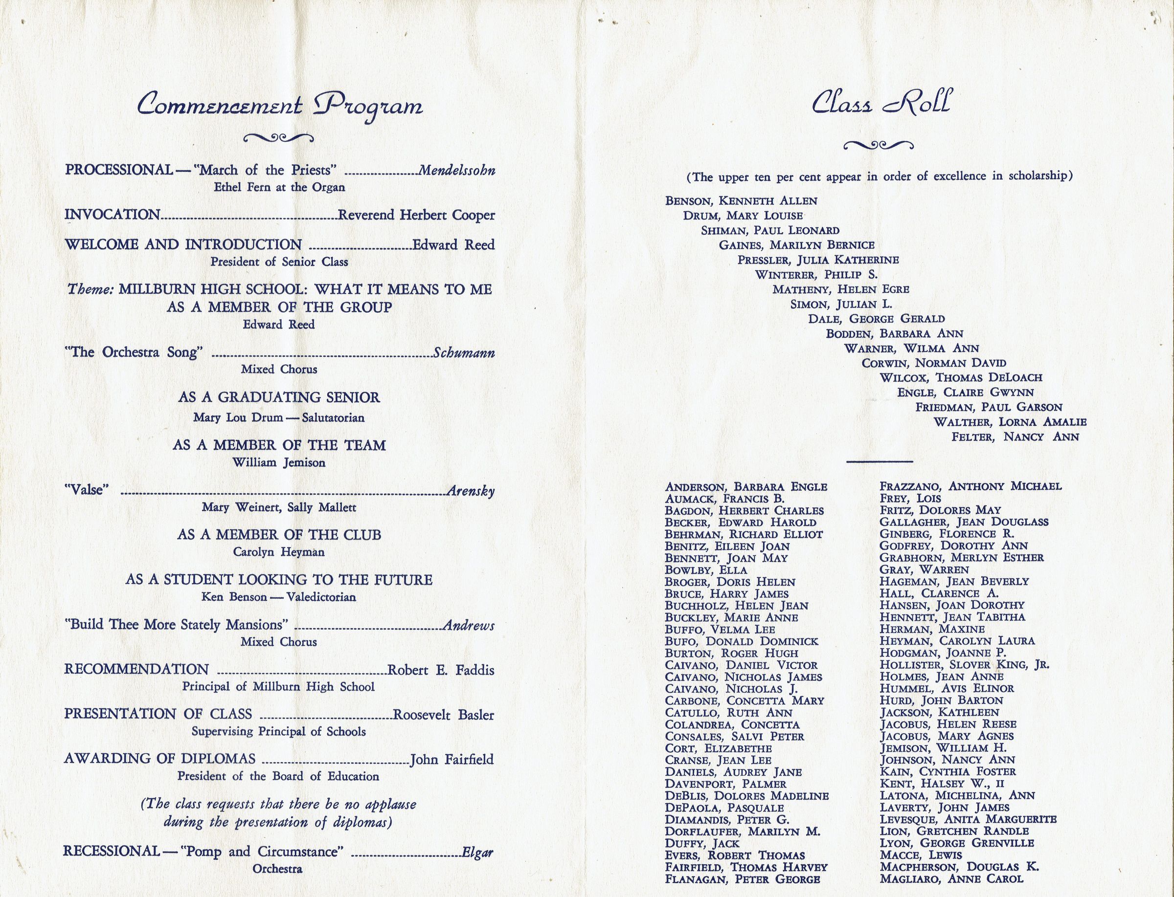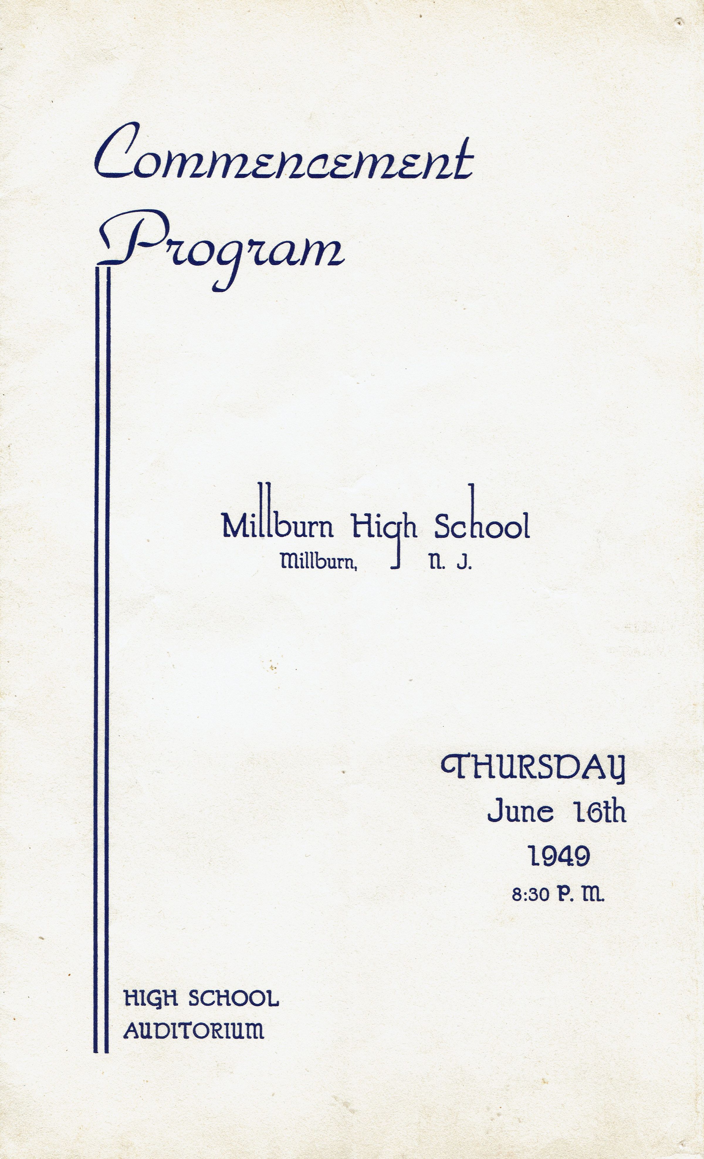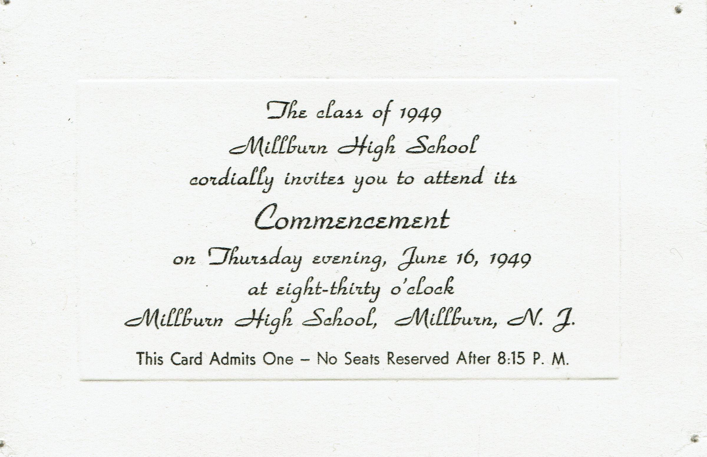 Millburn High School Commencement Program and Ticket, 1949