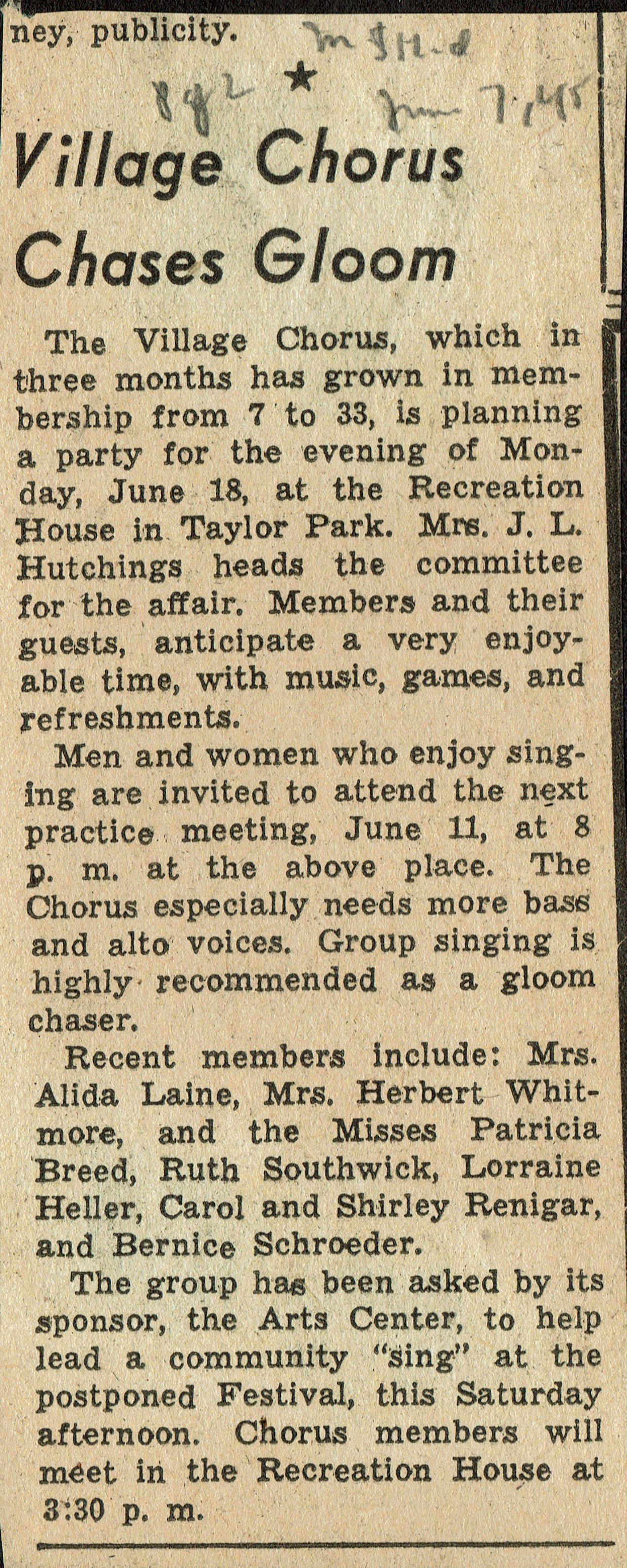 Millburn Art Center 1945 Scrapbook: Village Chorus Performance at the Village Festival, 1945