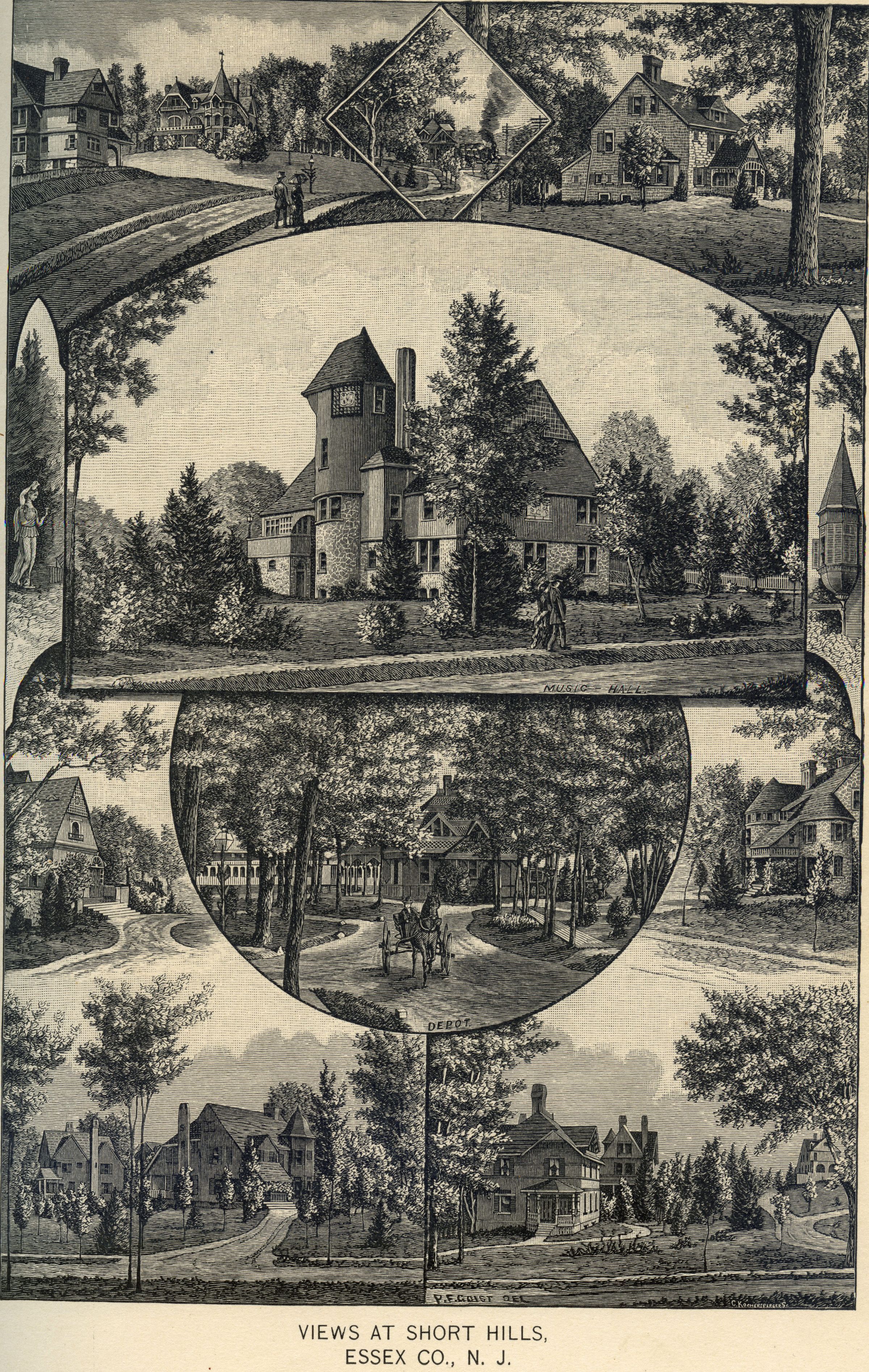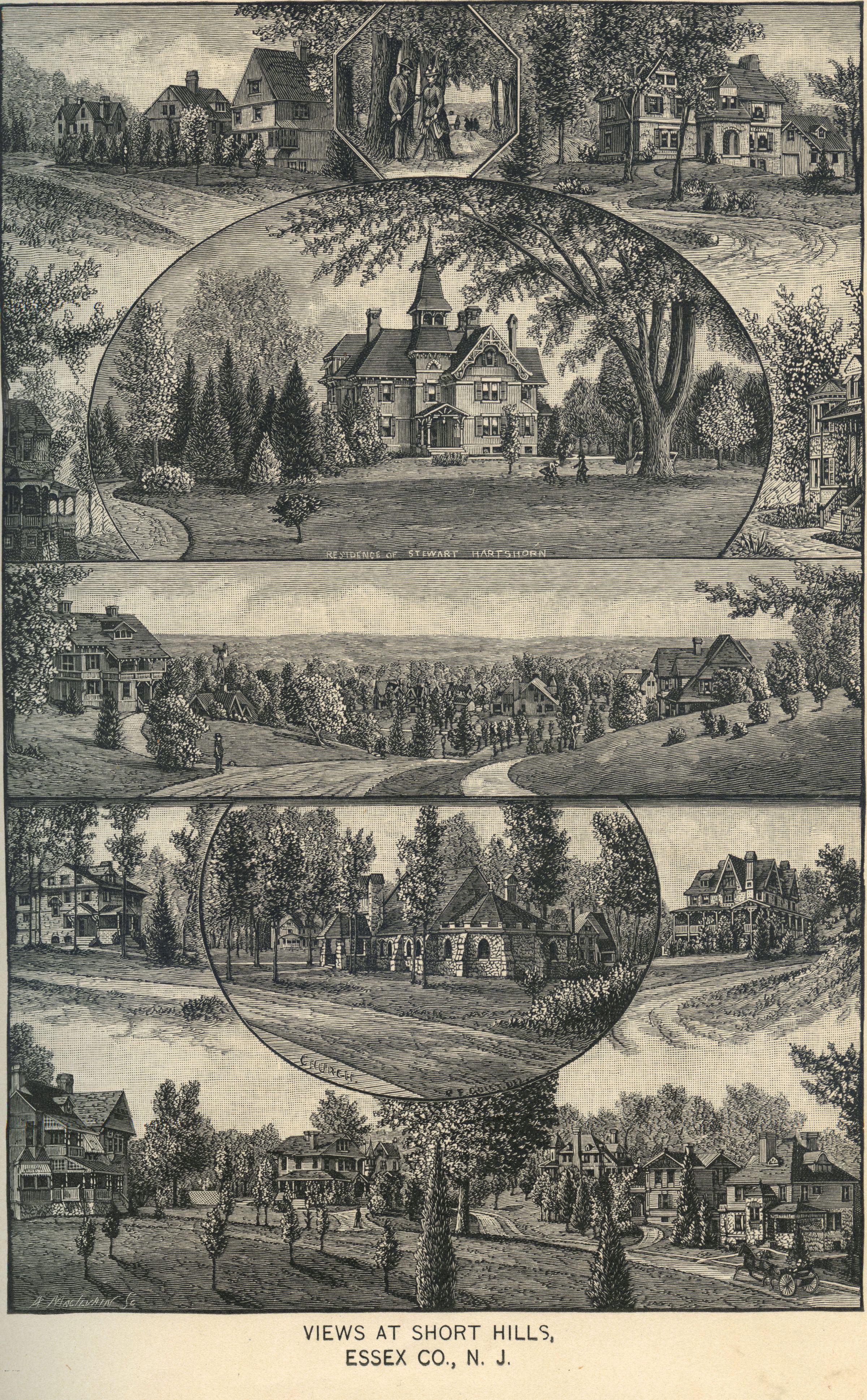 B&W Lithographic Print, Views at Short Hills, Essex County, NJ